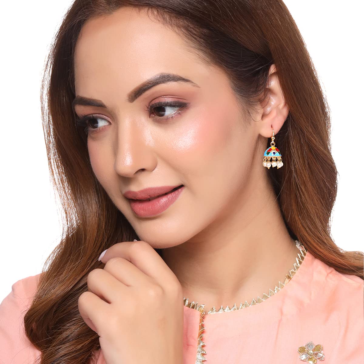 Earrings for Women and Girls Traditional Multicolor Meenakari Jhumka | Gold Plated Combo of 3 Pairs Jhumki Earrings | Birthday Gift for girls and women Anniversary Gift for Wife