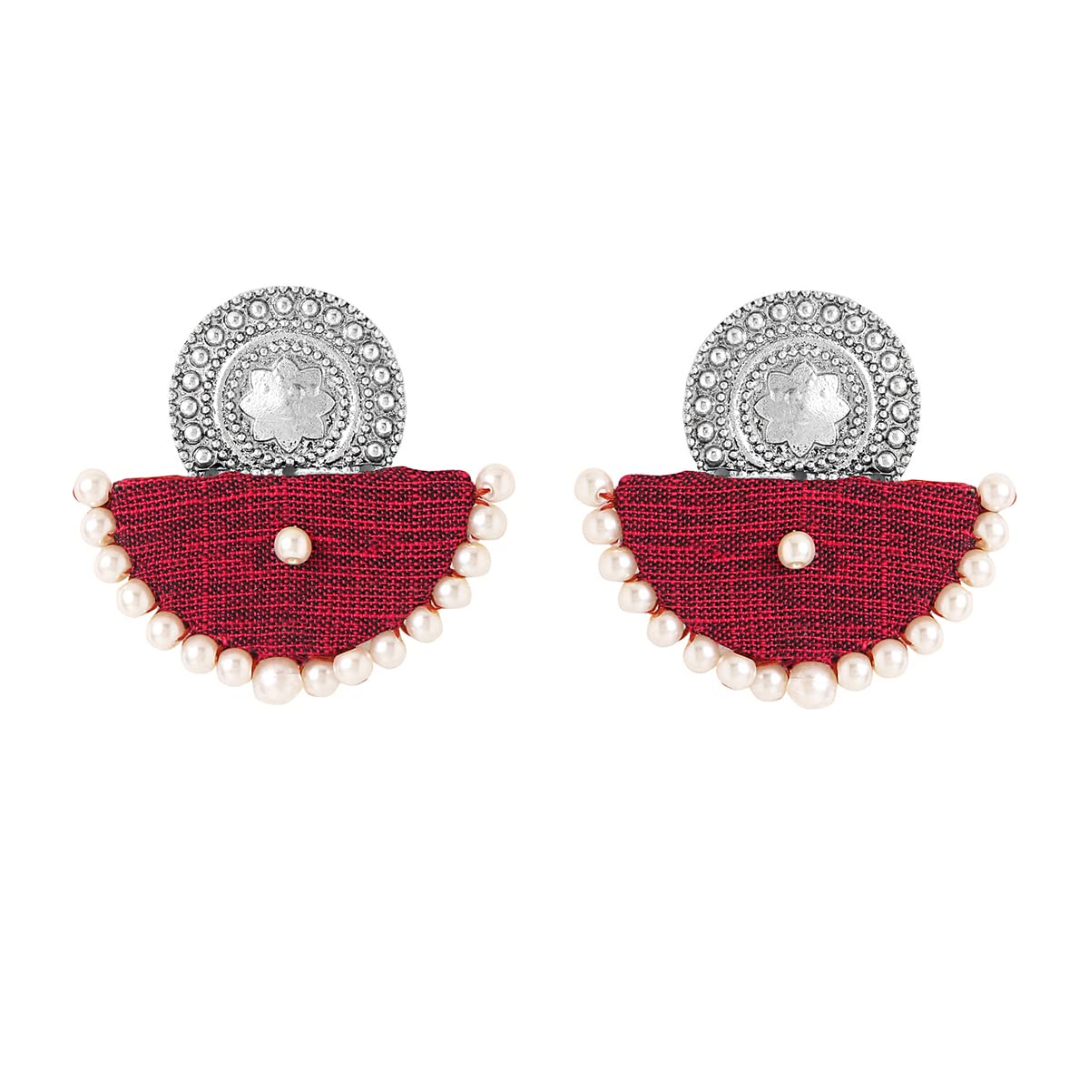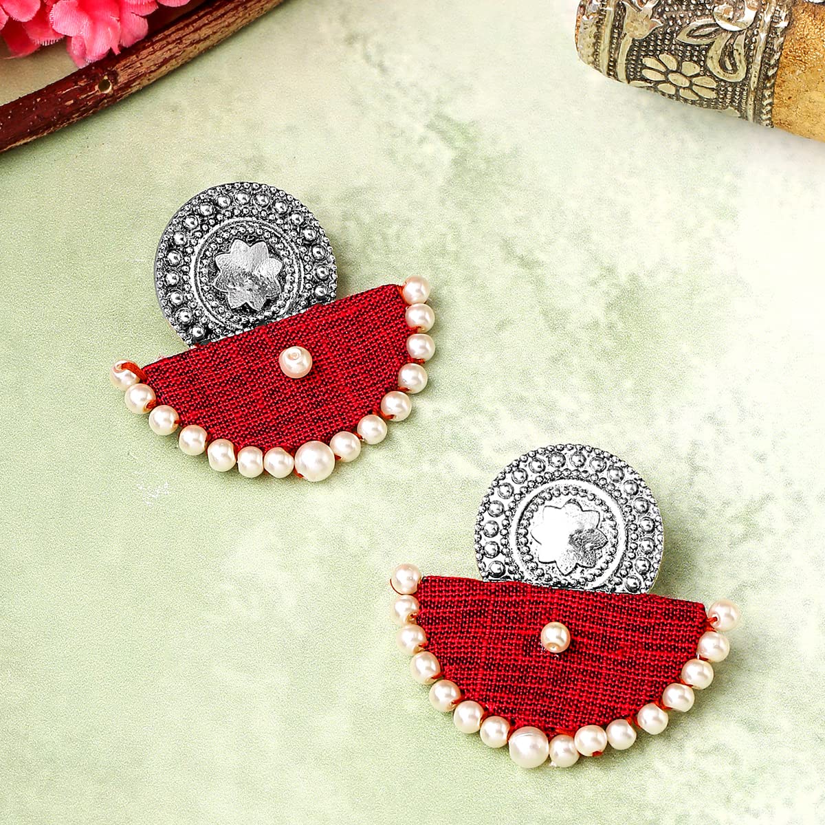 - Unique Design: The maroon woven wrapped pearl drop is beautifully complemented by a silver oxidised finish, making these earrings a versatile addition to your jewelry collection.
