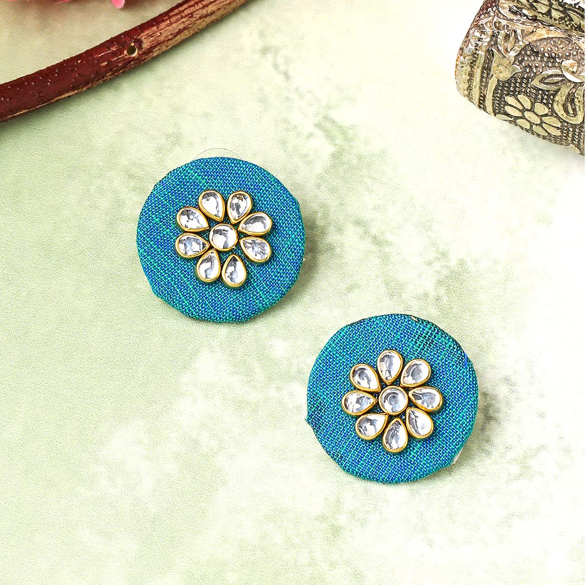 - This blue woven wrapped kundan stud earrings for women comes with a unique design that suits any of your outfit. Our Product is perfect for valentines Anniversary Birthday gift for Women,girlfriend,Wife.