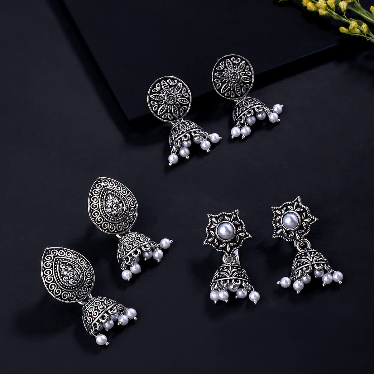 - This Silver Oxidised Combo of 3 Pairs Jhumka Earrings is must jewellery for any of your outfit. Our Product is perfect for valentines Anniversary Birthday gift for Women,girlfriend,Wife.