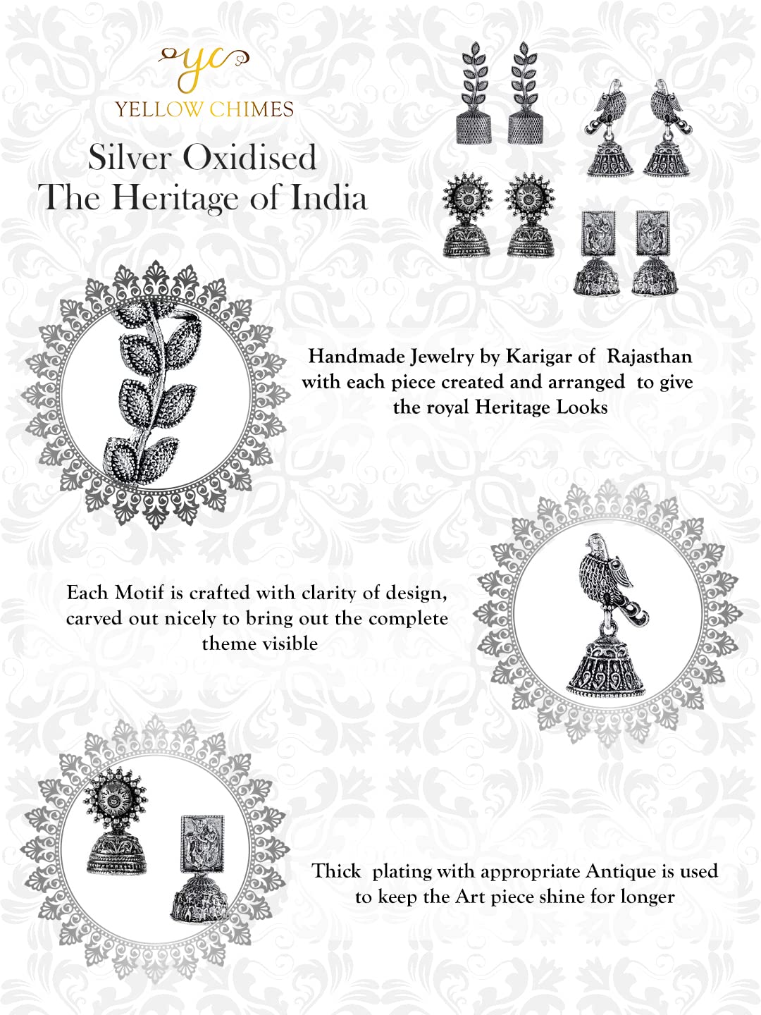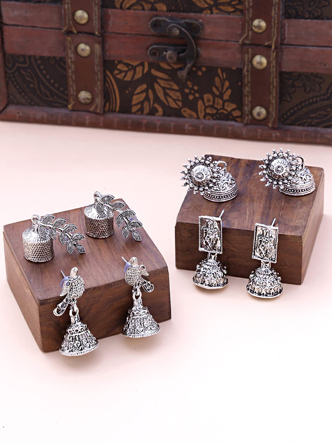 - Combo of 4 Pcs Silver Oxidized Indian Traditional Jhumkas earrings set. Parrot, Leaf and Floral Shape Combo Attractive Eye catched Jhumka Earring. Our Product is perfect for valentines Anniversary Birthday gift for girlfriend and Wife.