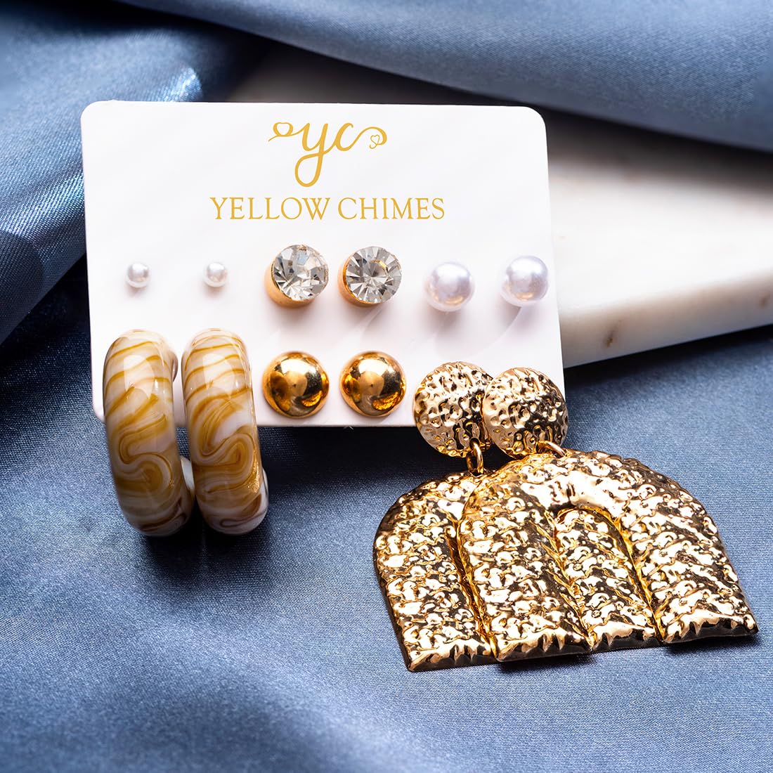 Yellow Chimes Earrings for Women and Girls| Combo of 6 Pairs Danglers Drop and Stud Earrings for Women| Multicolour Earrings for Girls| Birthday Gift for Women| Anniversary Gift for Wife