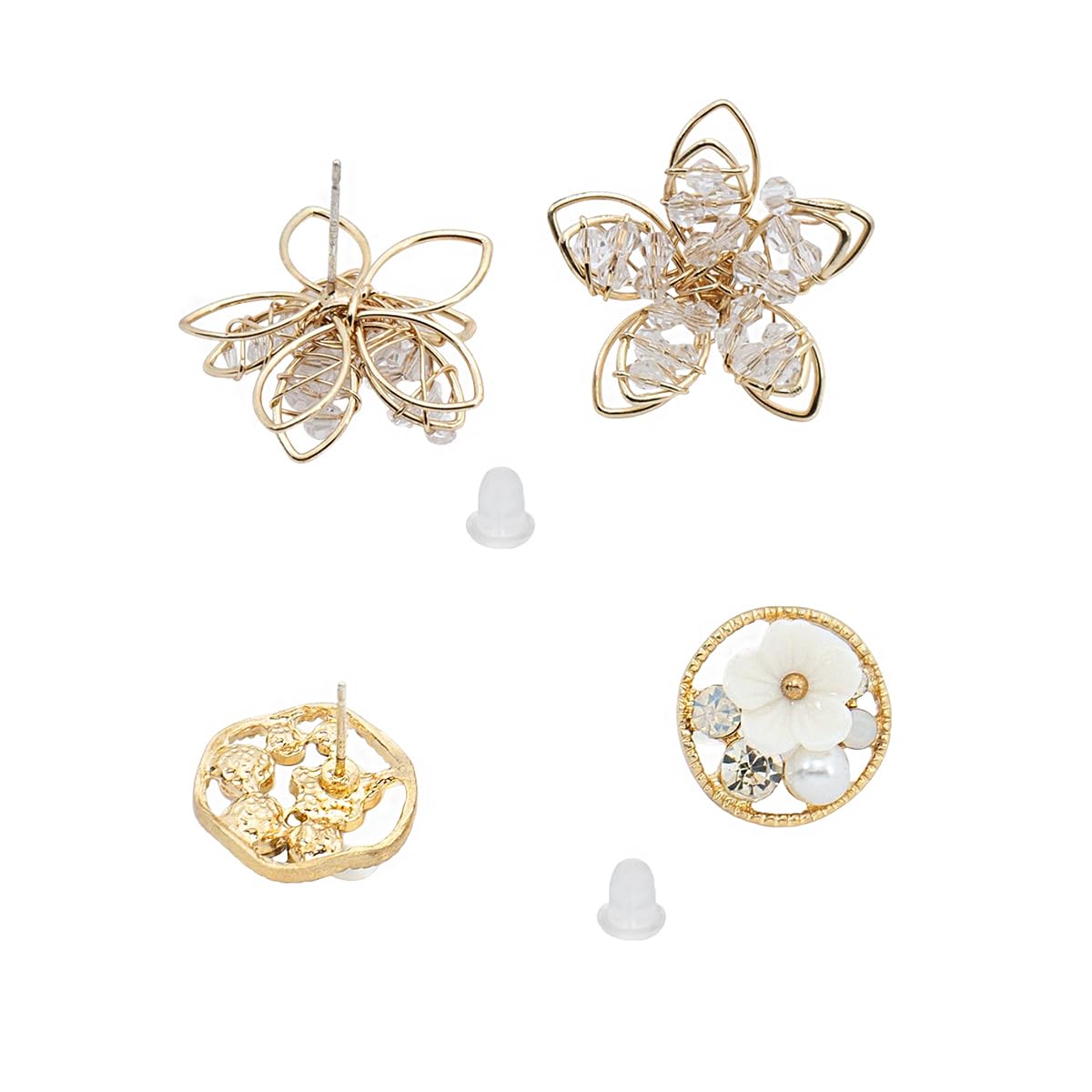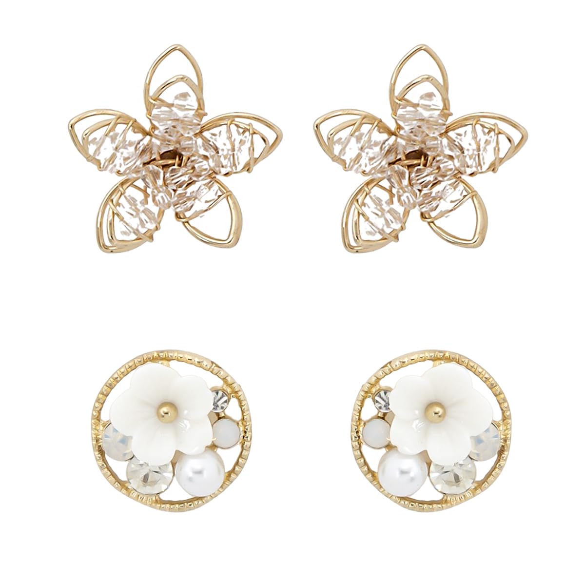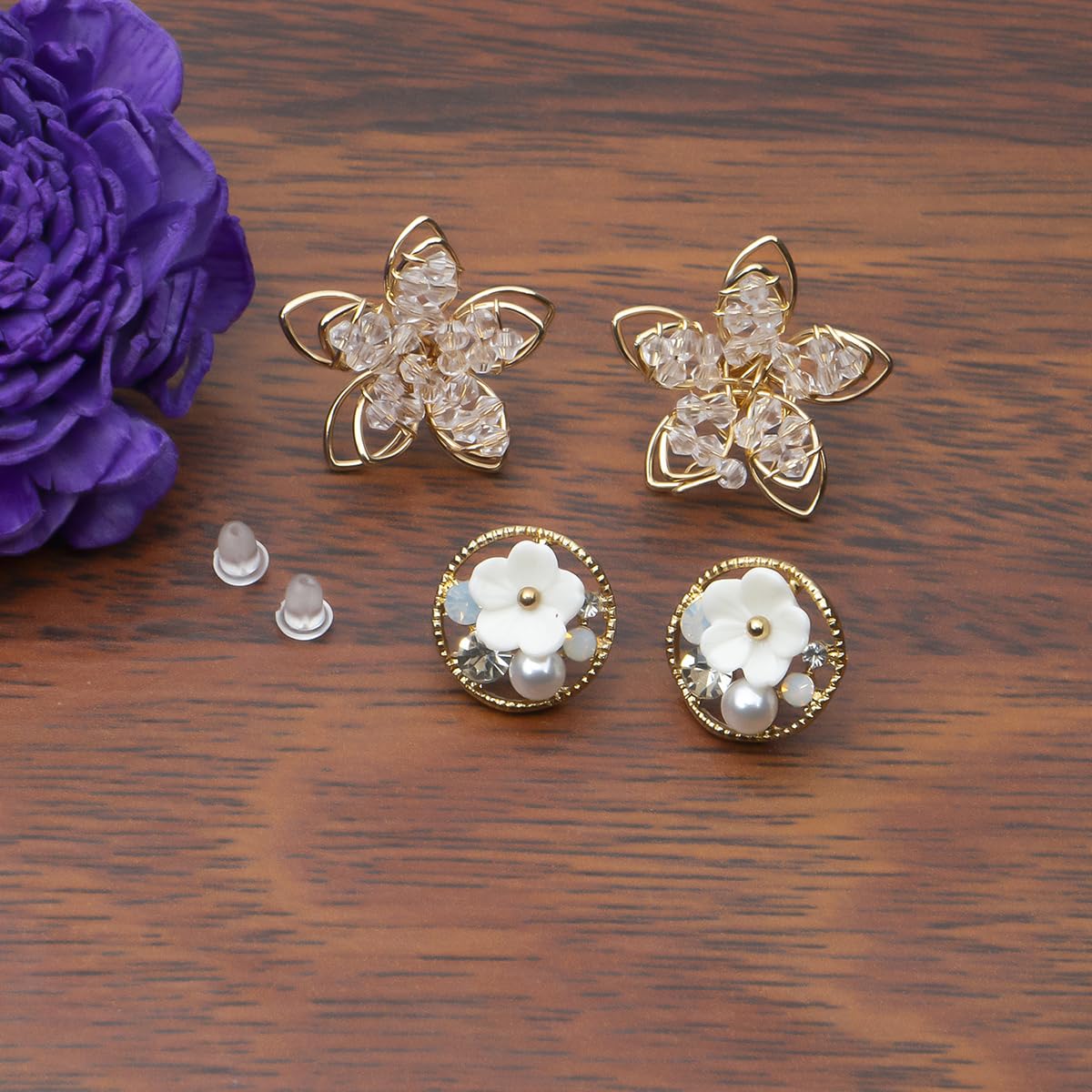 Earrings for Women and Girls Crystal Studs | Gold Tone Combo of 2 Pairs Floral Designed Stud Earrings | Birthday Gift for girls and women Anniversary Gift for Wife