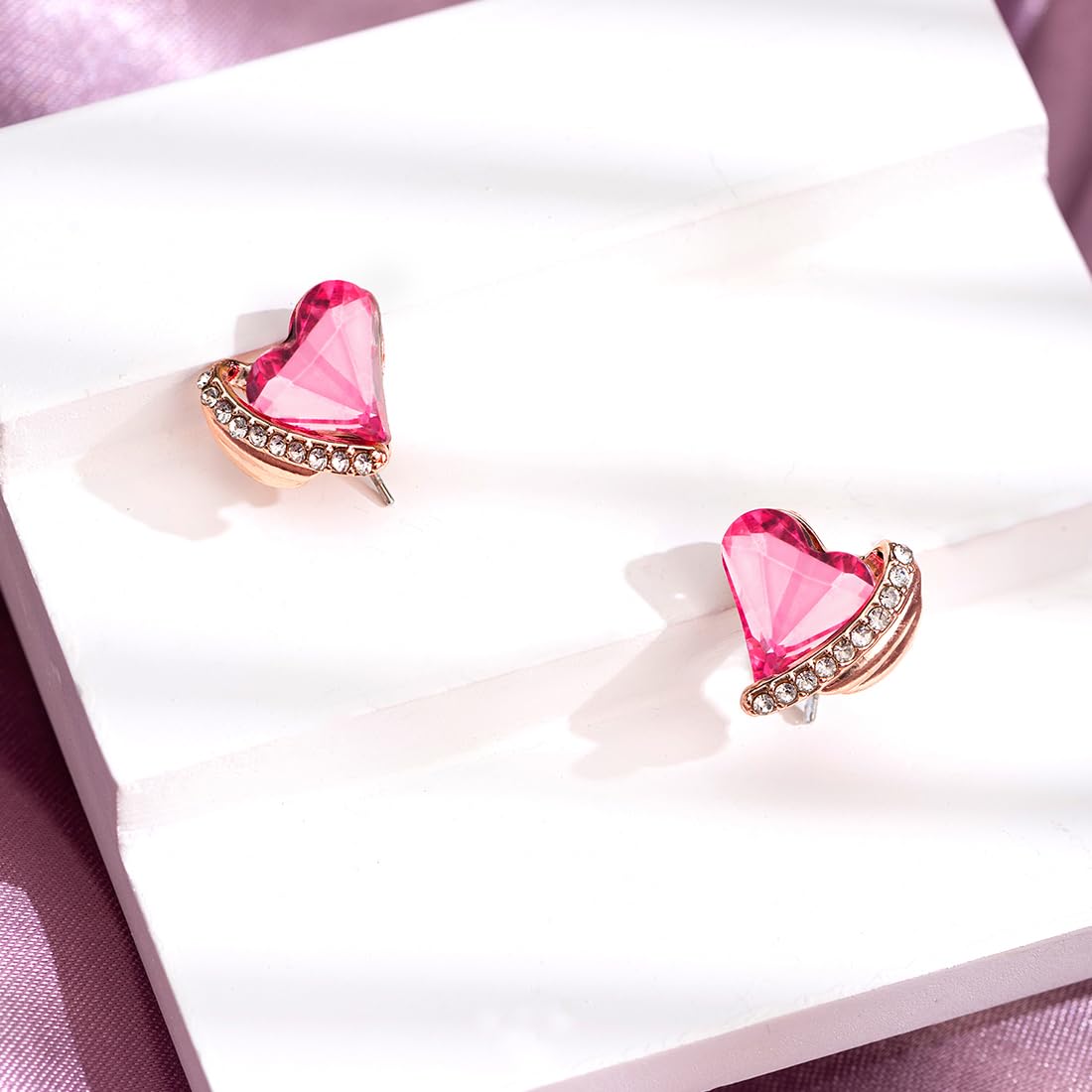 Earrings for Women and Girls Crystal Studs Gold Tone Pink Crystal Stud Earrings Birthday Gift for girls and women Anniversary Gift for Wife