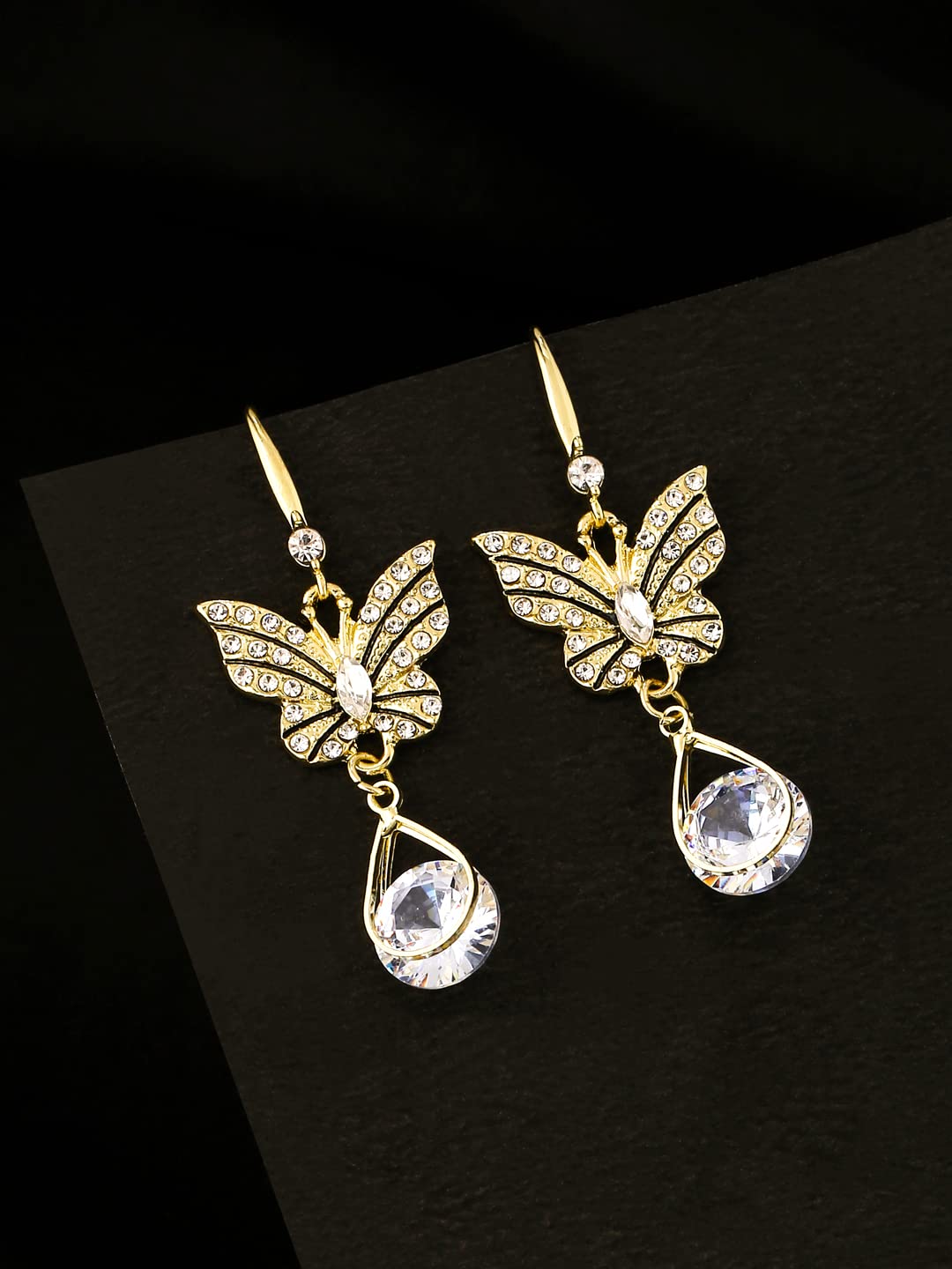 - Stunning Design: These earrings feature a beautifully crafted butterfly design, adorned with shimmering crystals that catch the light and enhance your natural beauty.