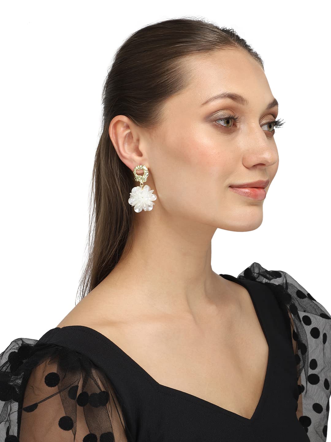 - Stunning Floral Design: Crafted with gold-plated metal, these earrings feature an intricate floral pattern that adds a touch of sophistication to your look.