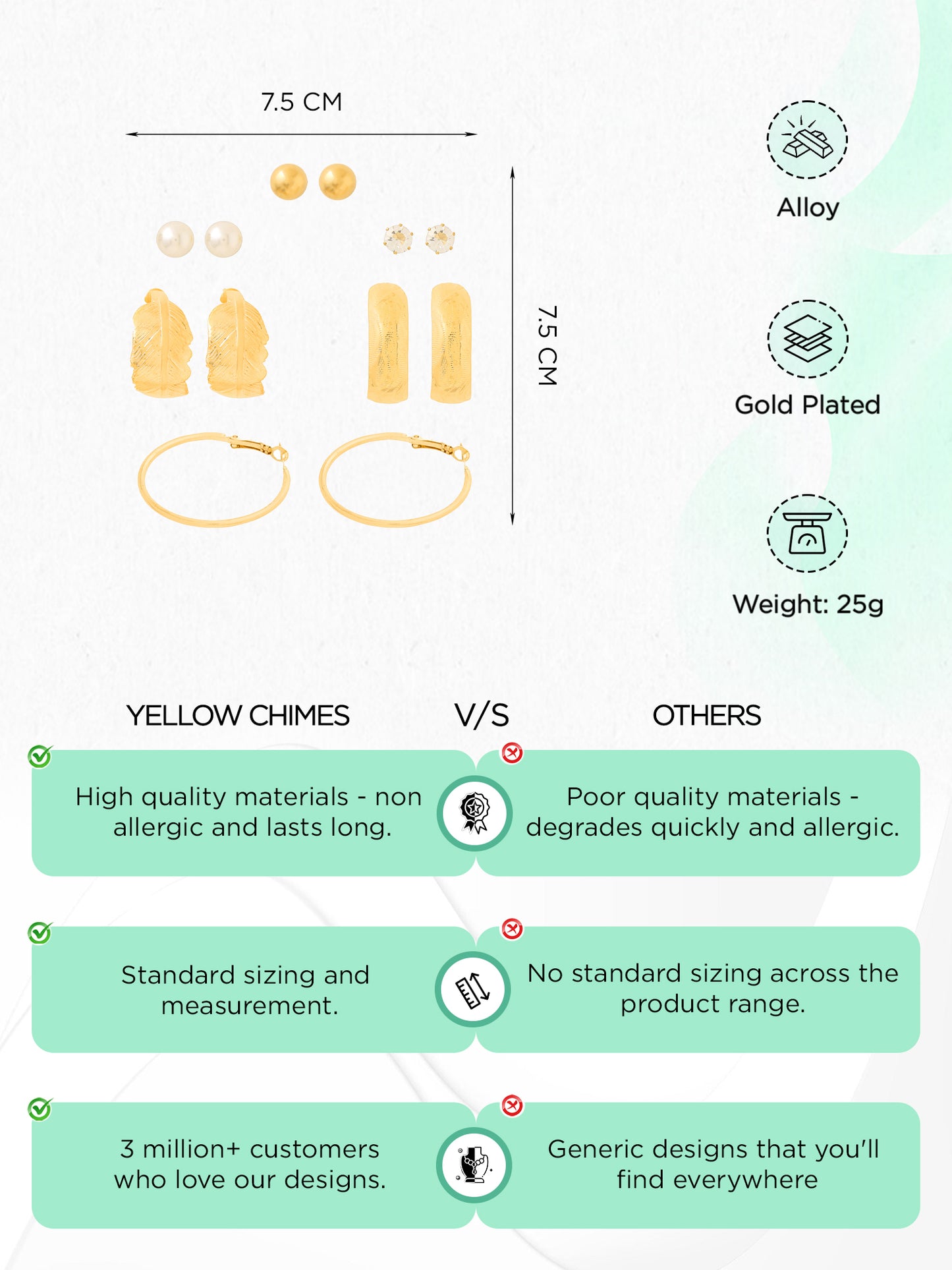 - Chic Design: A fashionable combination of gold plated hoops and studs, perfect for any occasion.