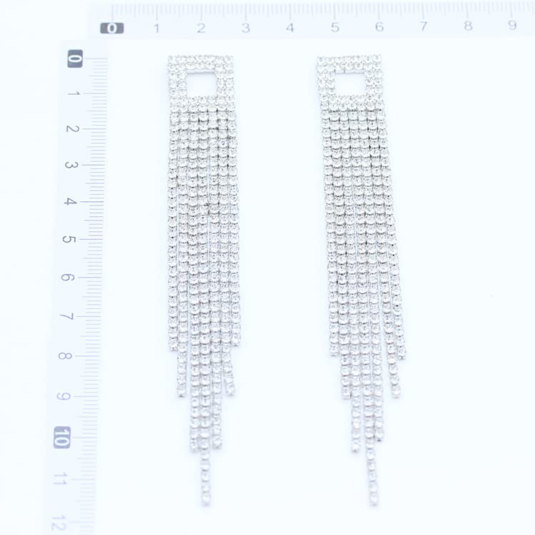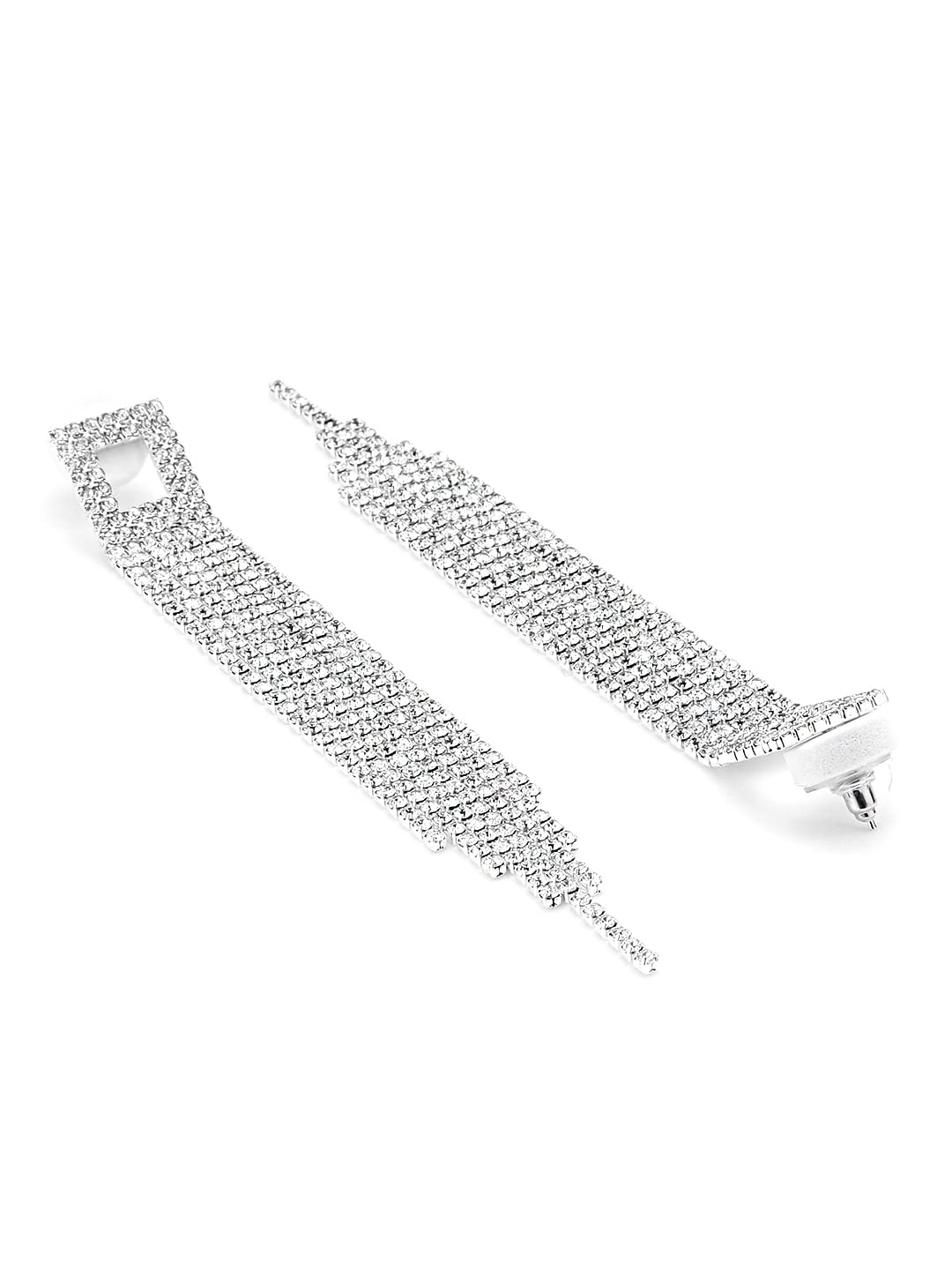 - RHODIUM-PLATED DANGLER EARRINGS: These Yellow Chimes earrings feature a silver-toned design with eye-catching crystals forming a square over engraved long chain danglers. The earrings are secured with a push & back closure and are lightweight for comfortable wear. Perfect for women looking for fashionable earrings for any occasion.