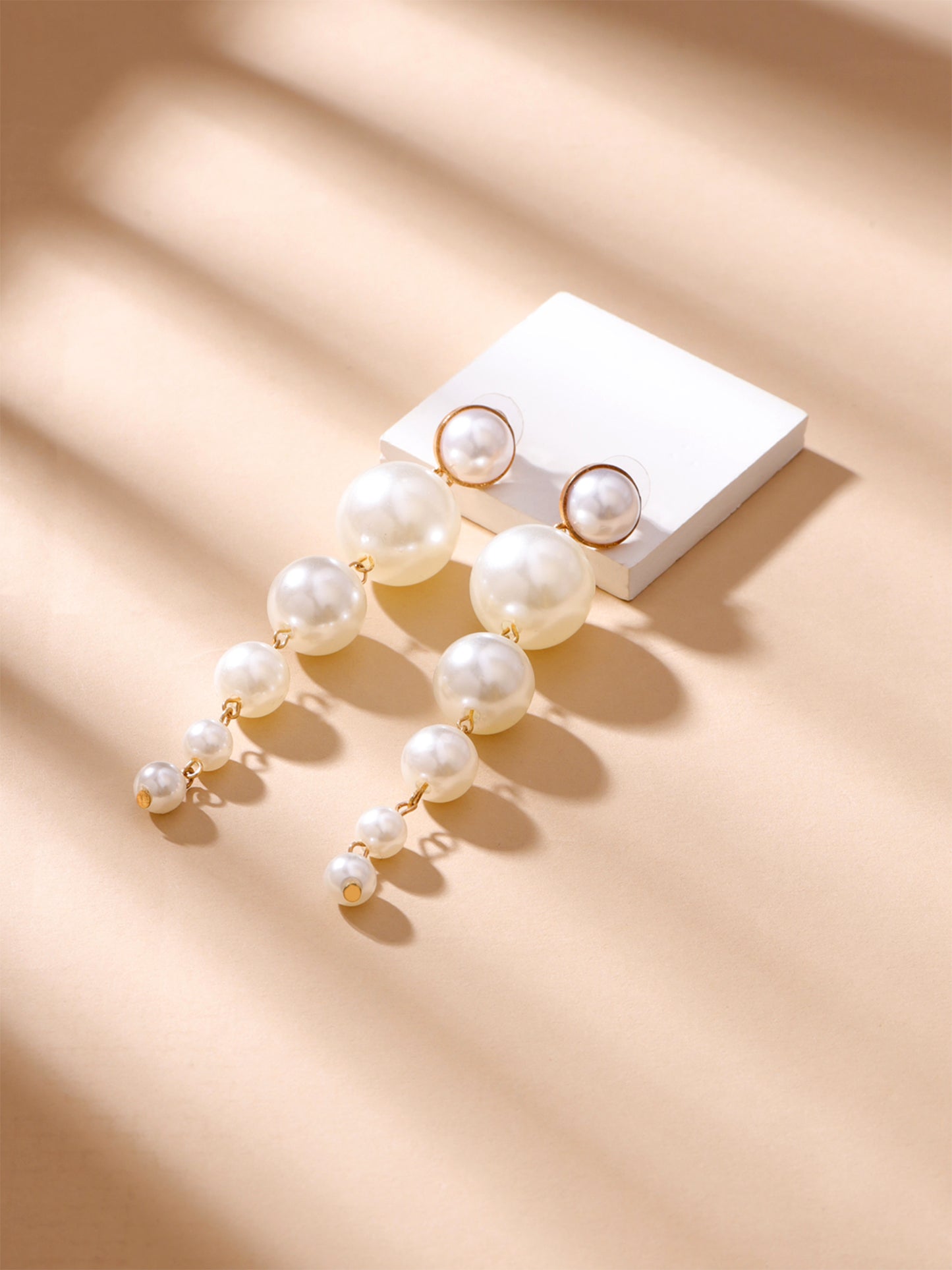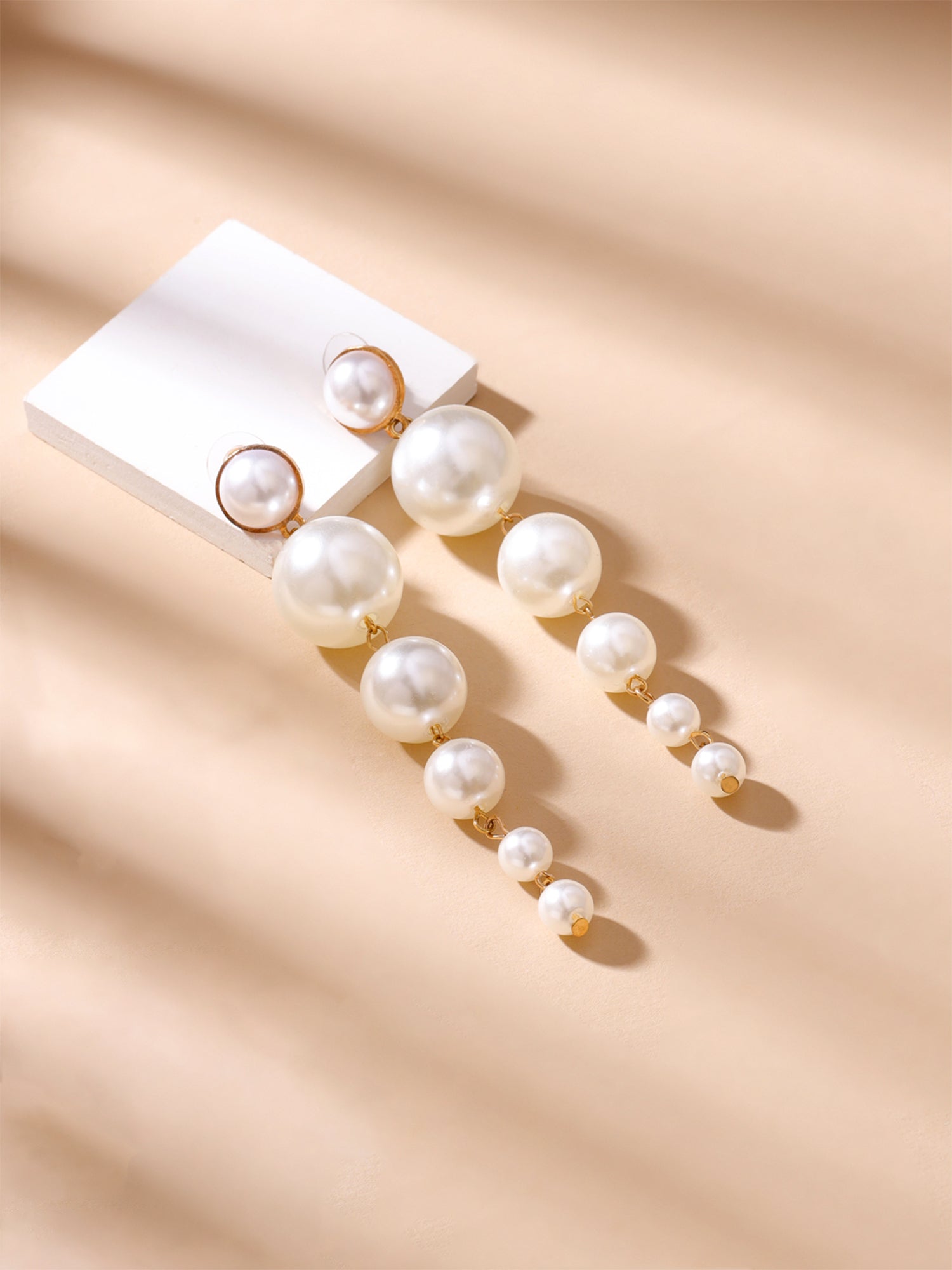 - Elegant Design: Crafted from high-quality gold-plated alloy and adorned with stunning hanging pearls, these earrings exude grace and charm.