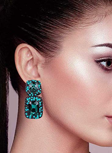Earrings for Women and Girls | Fashion Green Crystal Stone Drop Earring | Double Rectangle Shaped Drop Earrings | Birthday Gift for girls and women Anniversary Gift for Wife