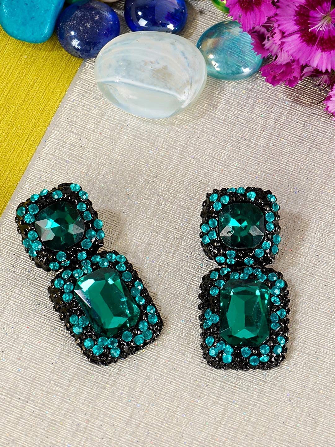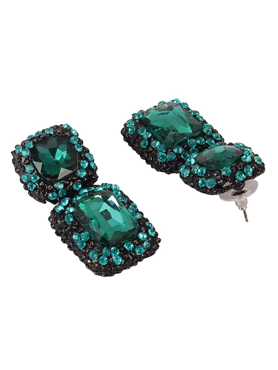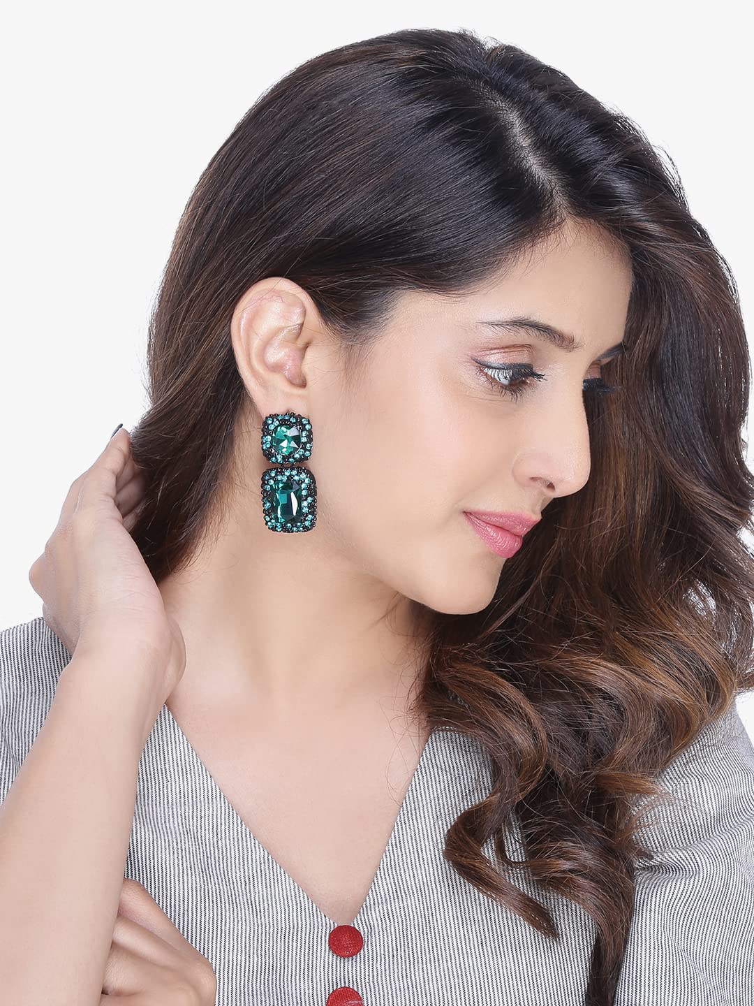 - Crystals Drop Earrings with lovely combination of Green Stone Double Size Rectangle Designed.Our Product is perfect for valentines Anniversary Birthday gift for girlfriend and Wife.