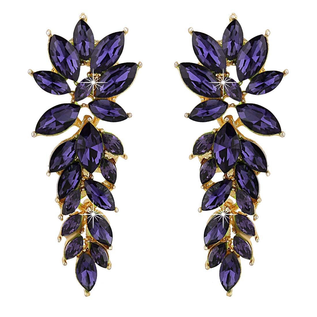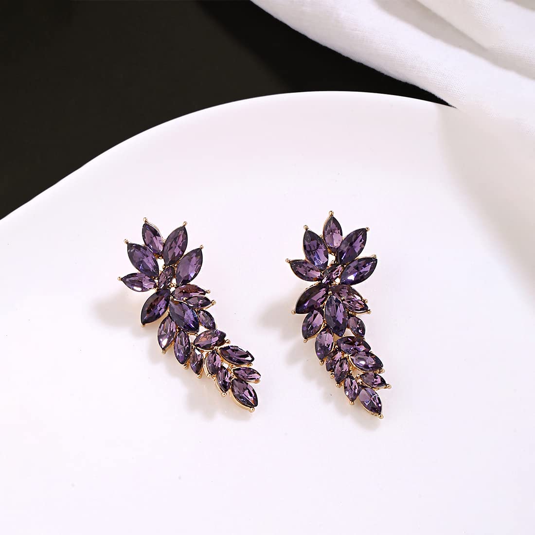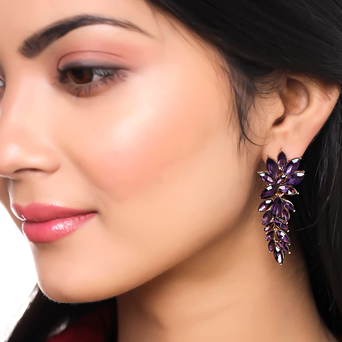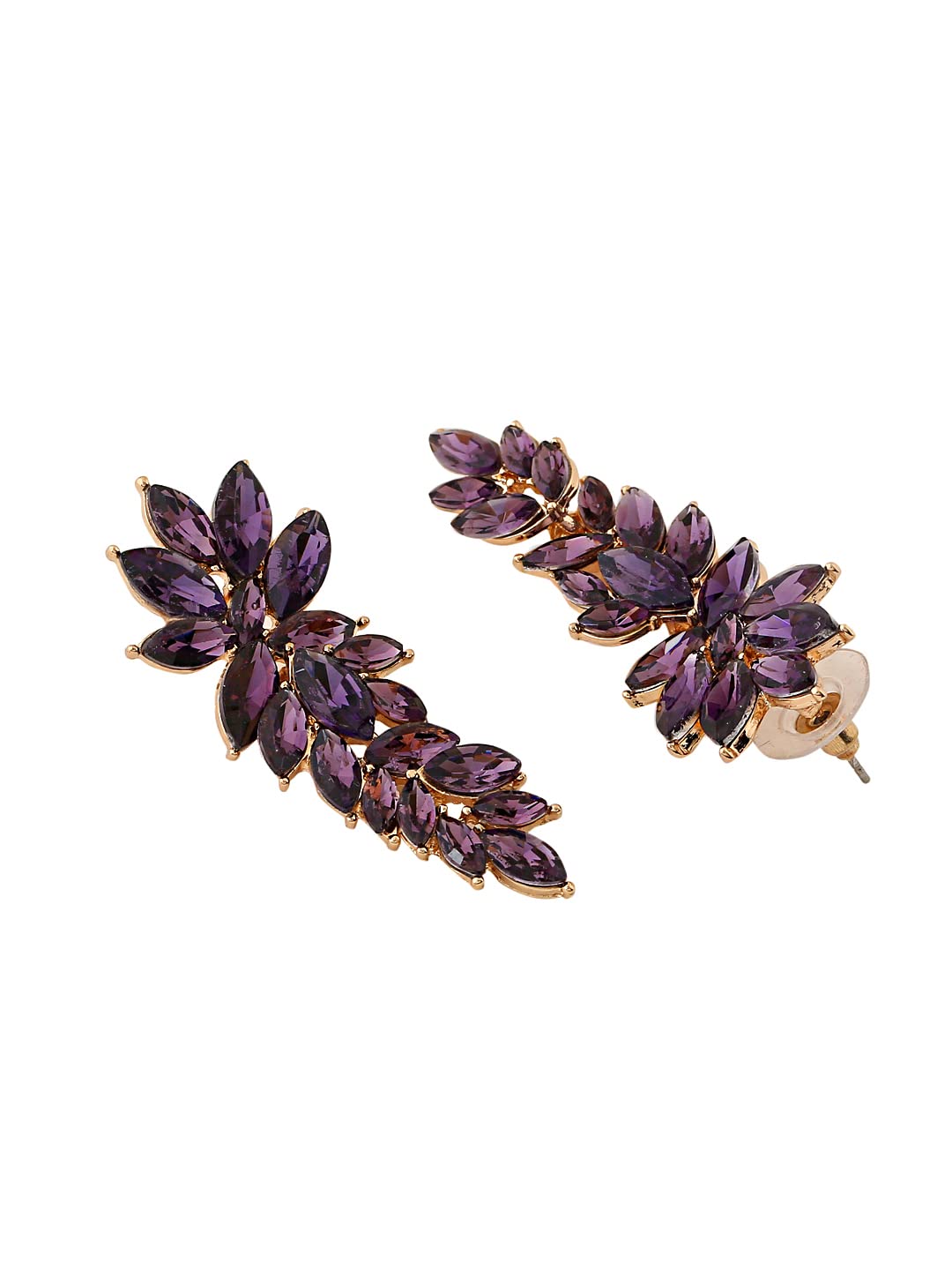 Earrings for Women and Girls | Fashion Purple Stone Crystal Stone Earring | Gold Plated Drop Earring | Floral Leaf Shaped Drop | Accessories Jewellery for Women | Birthday Gift for Girls and Women Anniversary Gift for Wife