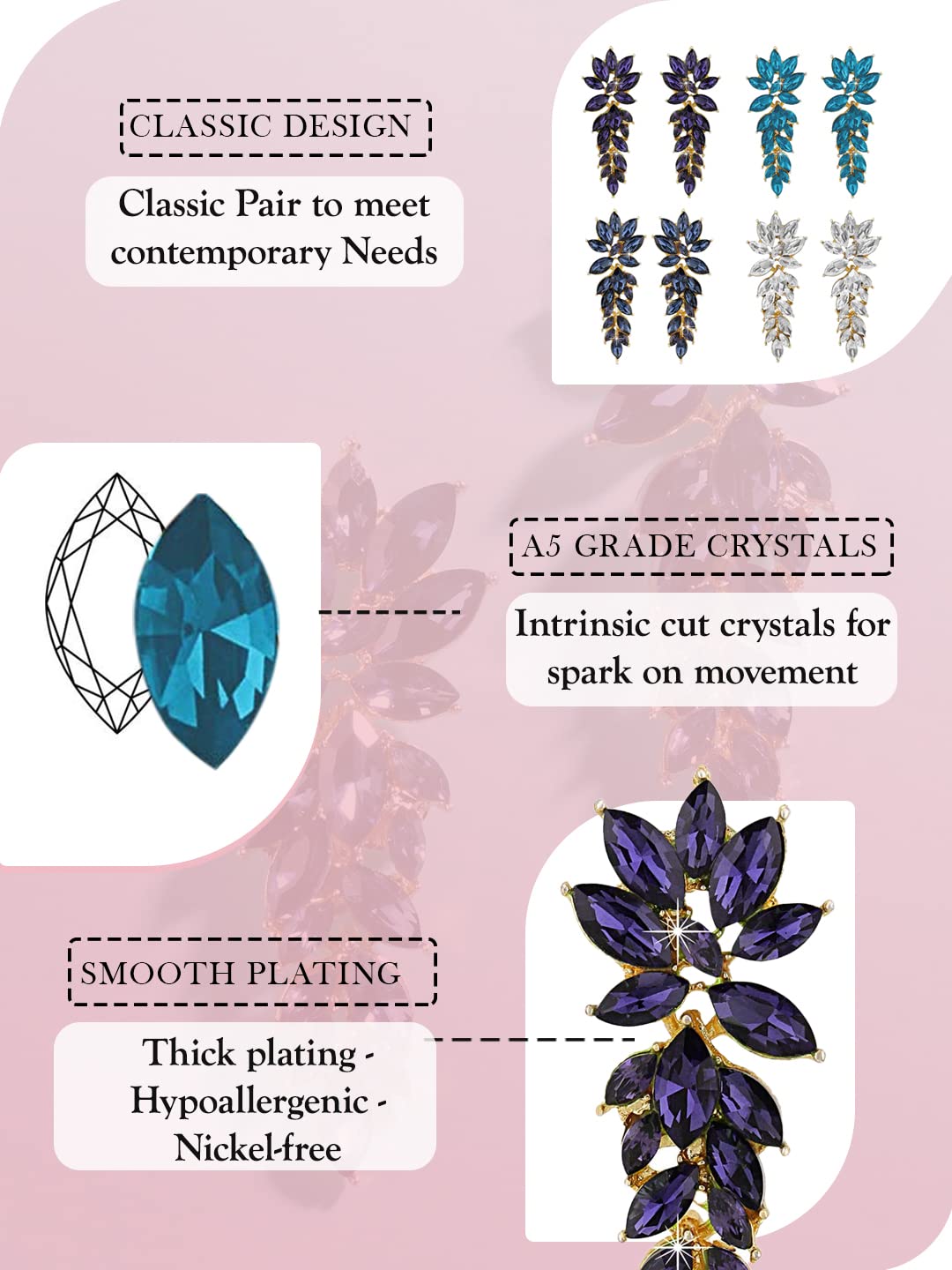 - Fashionable Purple Stone: Each earring is adorned with a captivating purple crystal stone, adding a pop of color to any outfit.