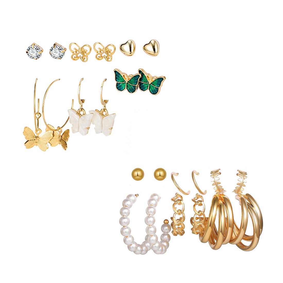 - 12 Pairs of Gold Plated Combo of Pearl Studs and Hoop Earrings for women. 3 small size Studs and 3 big size Pearl of Hoop Earring lightweight, very comfortable to wear. stury & safety, Give You a Comfortable Wear Experiance. Our Product is perfect for valentines Anniversary Birthday gift for girlfriend and Wife.