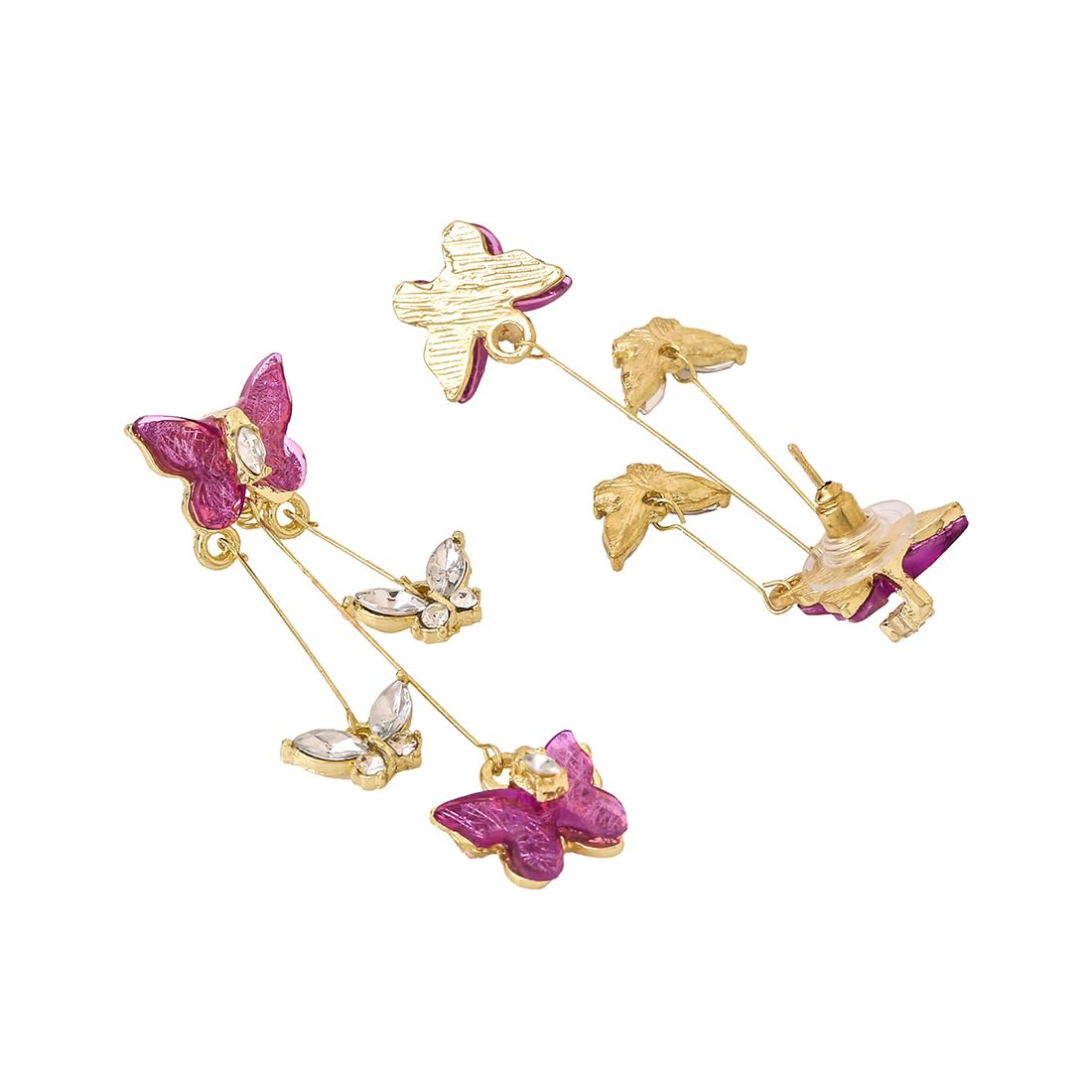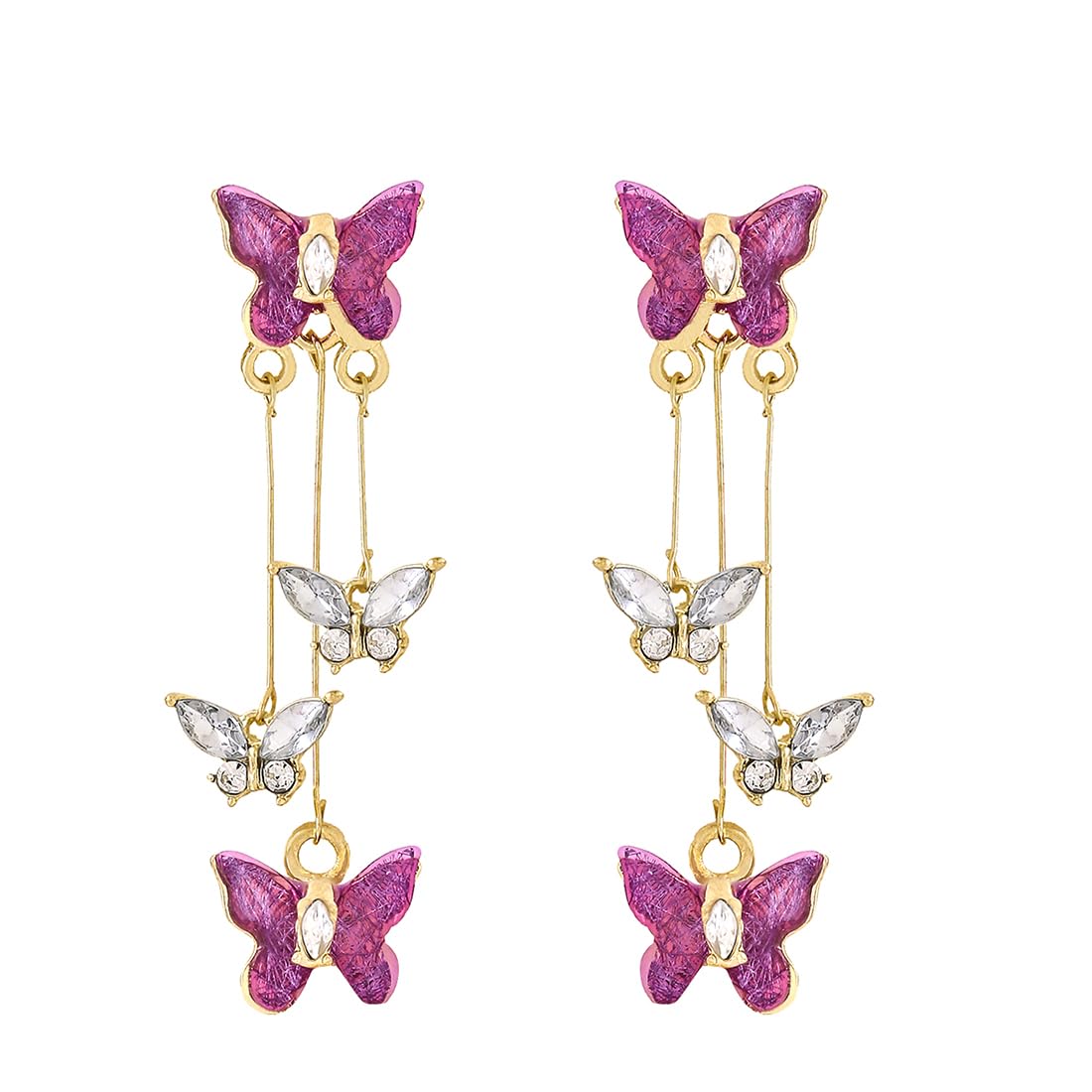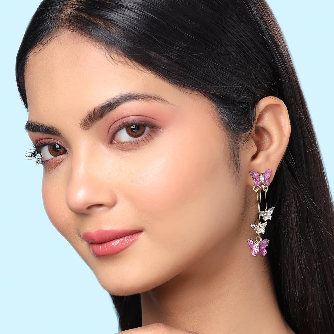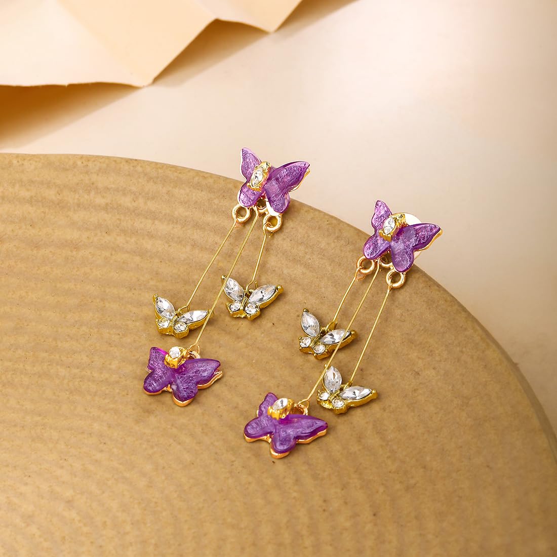 Earrings for Women and Girls Fashion Purple Dangler Earrings | Gold Plated Butterfly Long Chain Danglers Earrings | Birthday Gift for Girls and Women Anniversary Gift for Wife