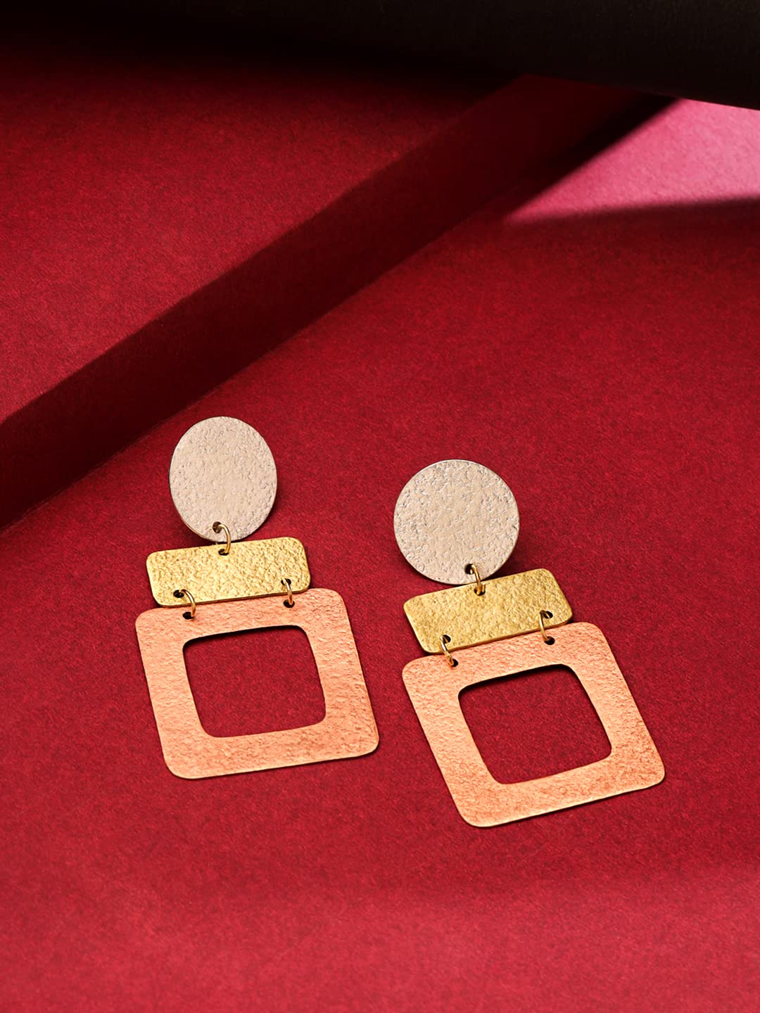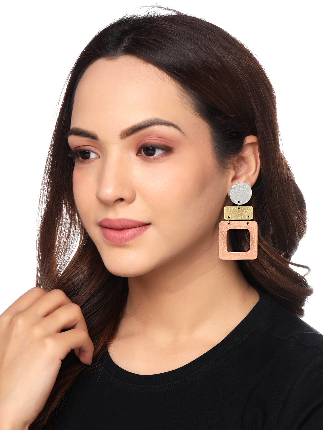 Earrings for Women and Girls | Gold Drop Earring | Gold Plated Drop | Geometric Rectangle Shaped Western Drop | Accessories Jewellery for Women | Birthday Gift for Girls and Women Anniversary Gift for Wife