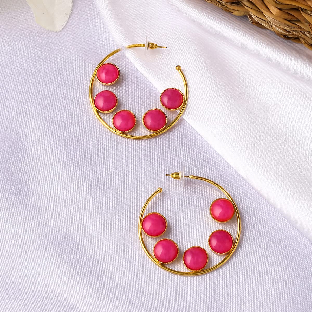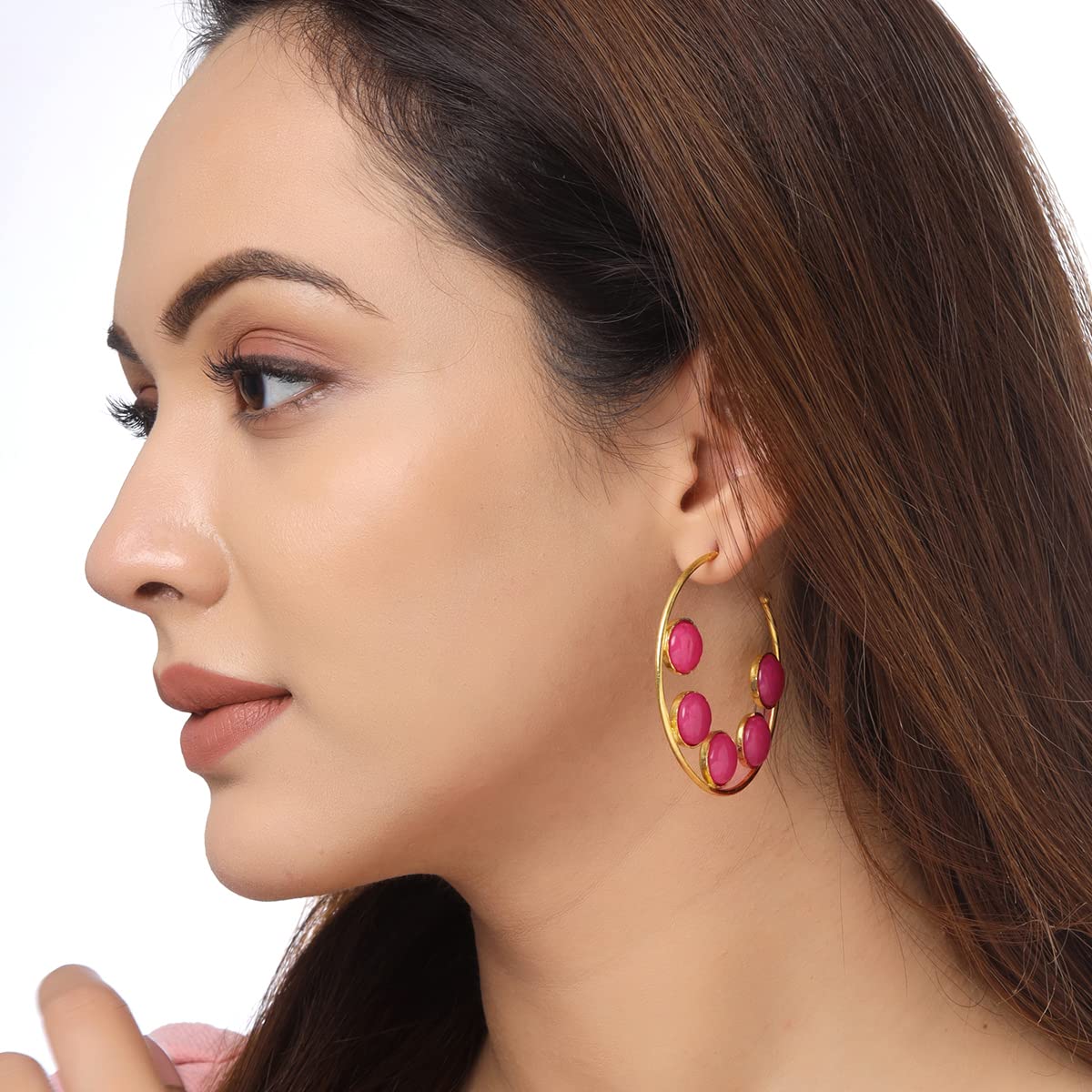 Earrings for Women and Girls | Gold Plated Hoop Earrings|Stone Studded Hoops Earrings | Birthday Gift for girls and women Anniversary Gift for Wife