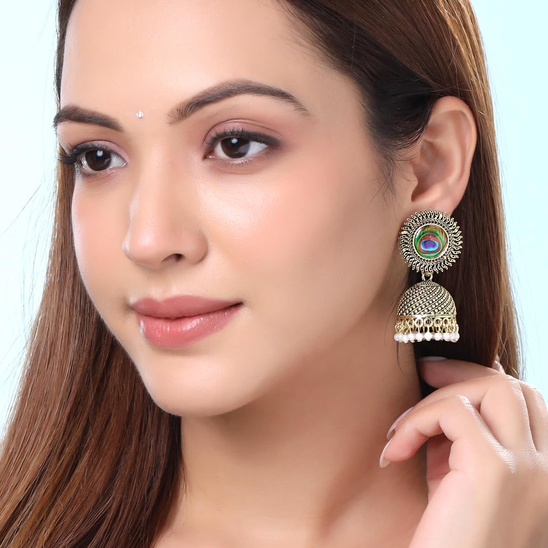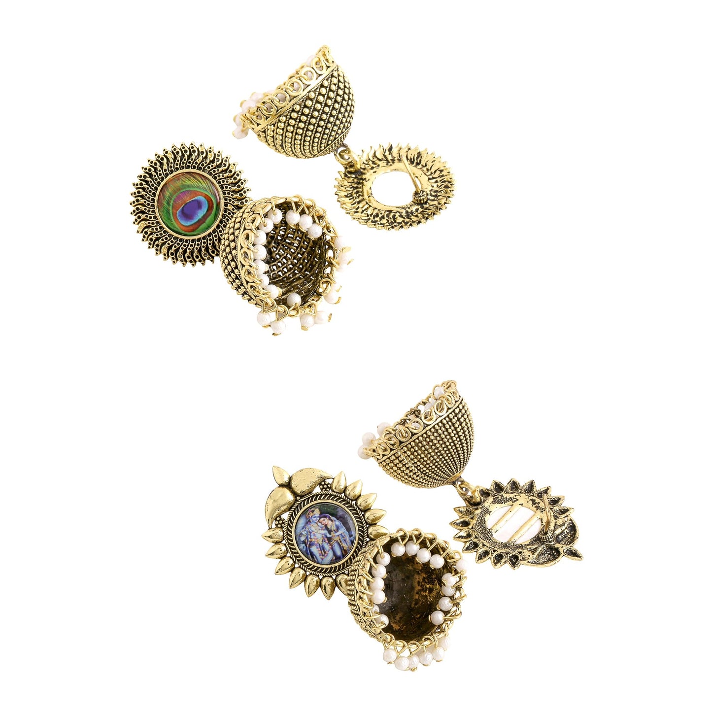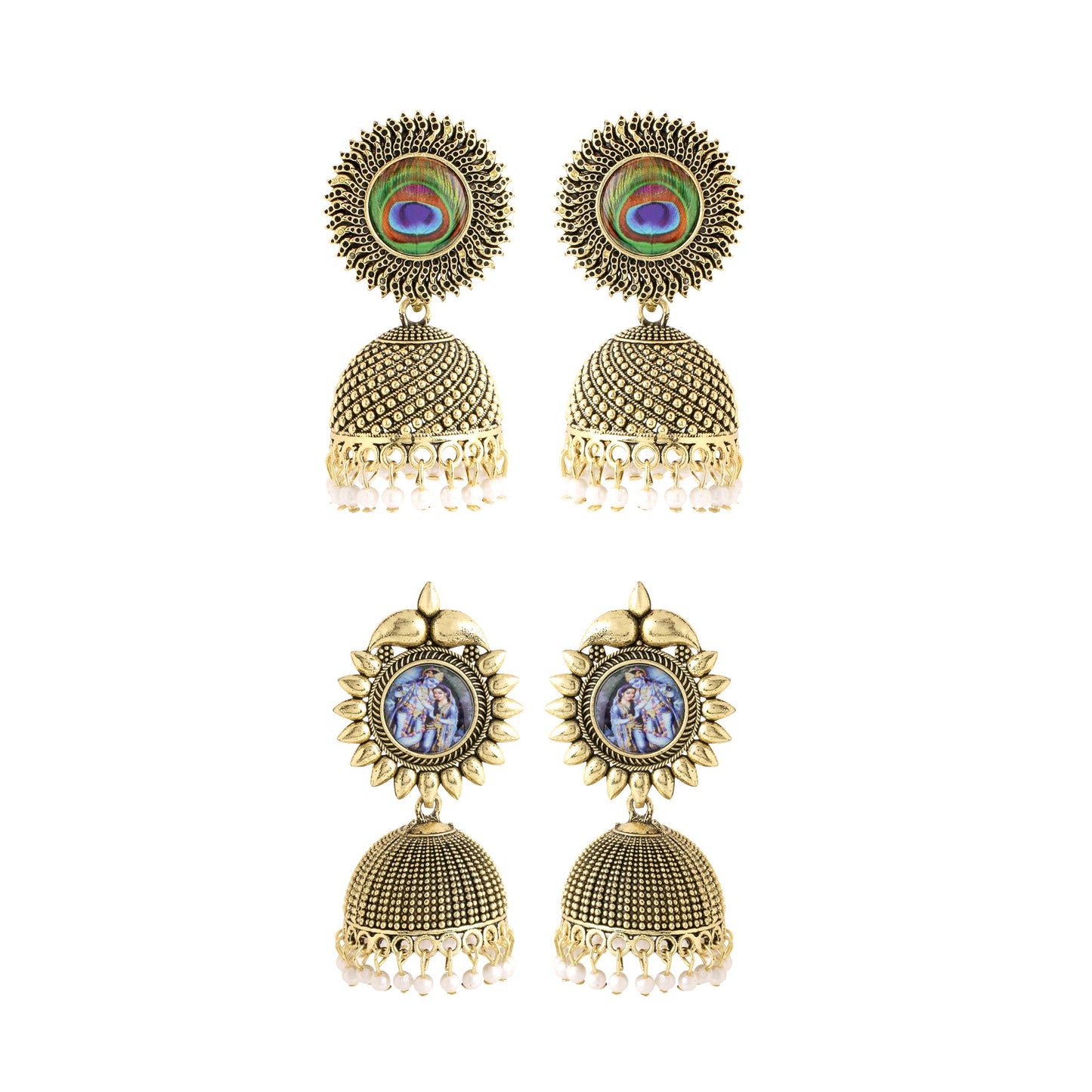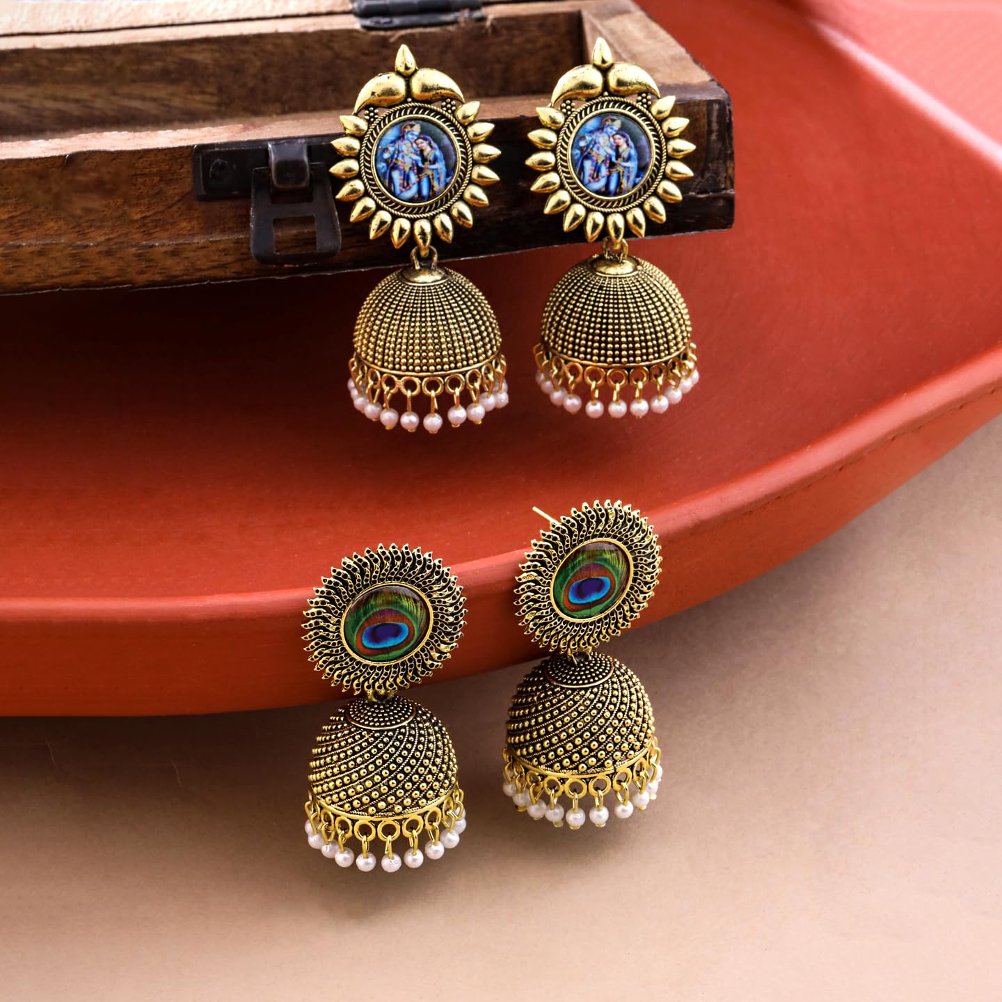 Earrings for Women and Girls Traditional Golden Big Jhumka Earrings for Women Oxidised Gold Plated 2 Pairs Combo Jhumka Jhumki Earrings | Birthday Gift For Girls & Women