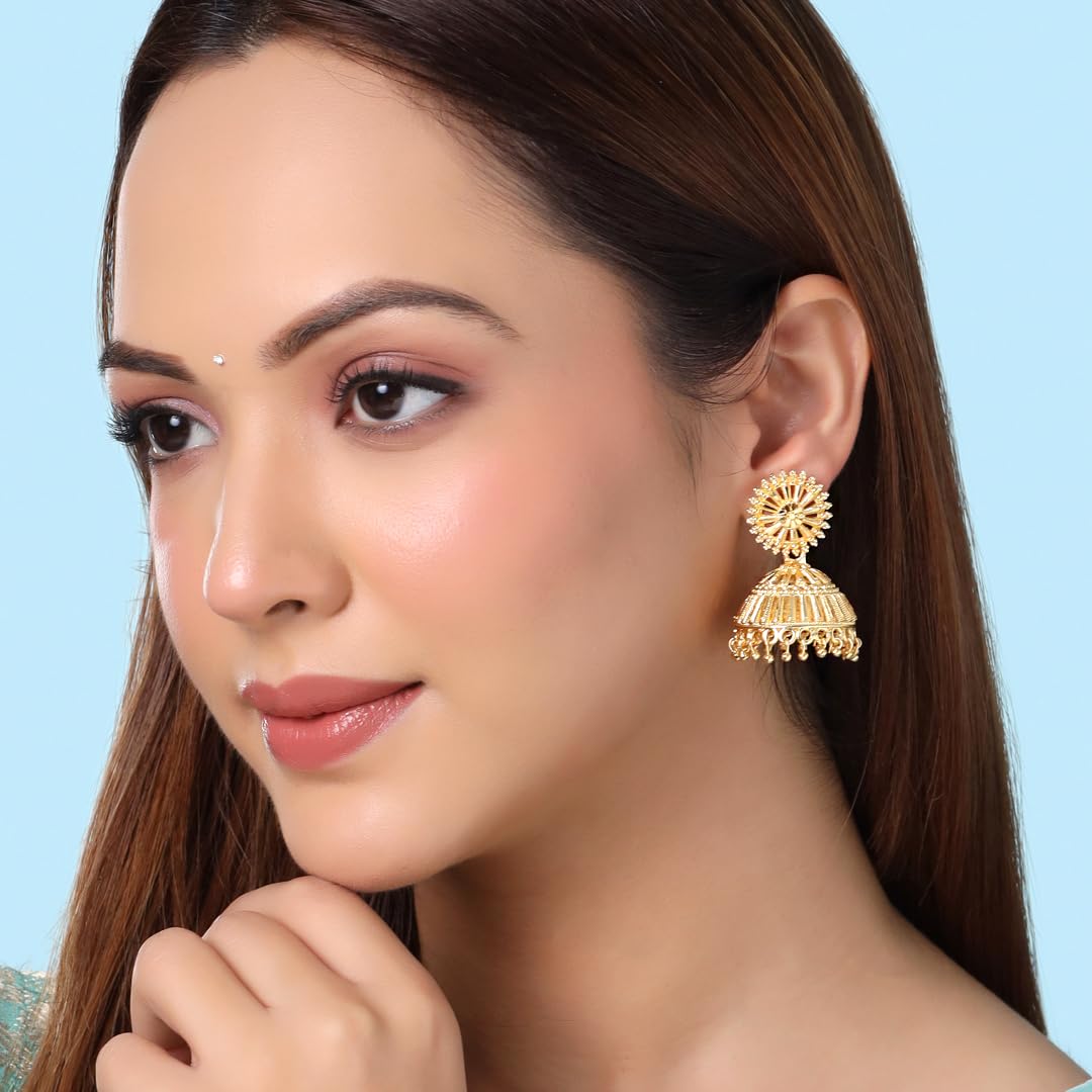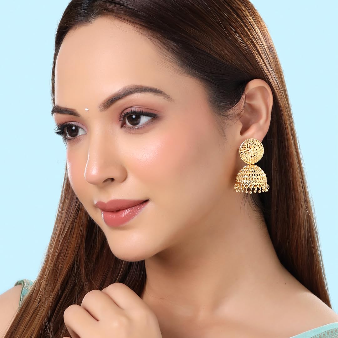 Discover Elegance with Yellow Chimes Gold Plated Jhumka Earrings