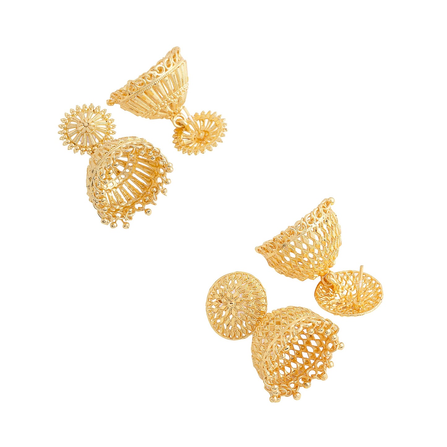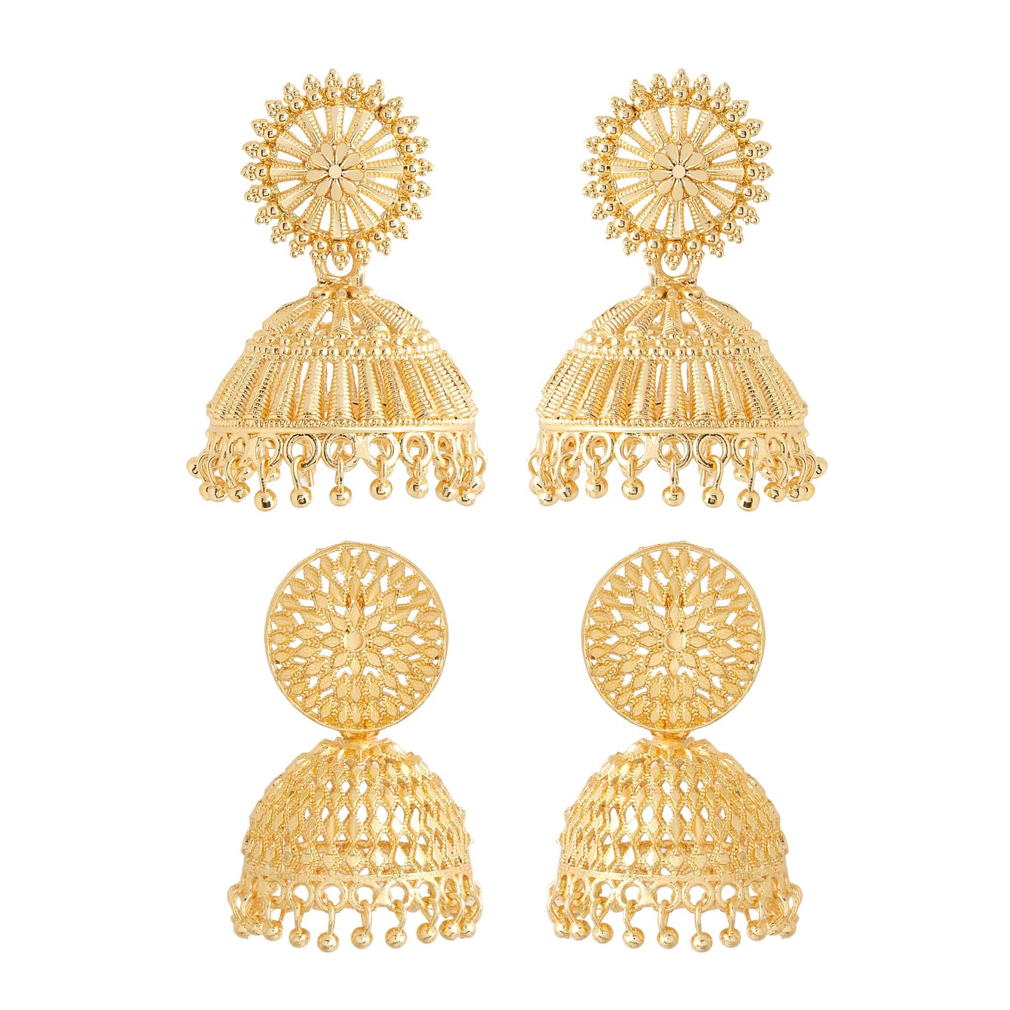 Earrings for Women and Girls Traditional Golden Jhumka Earrings for Women | One Gram Gold Plated Combo Of 2 Pairs Big Jhumka Jhumki Earrings | Birthday Gift for Girls & Women…