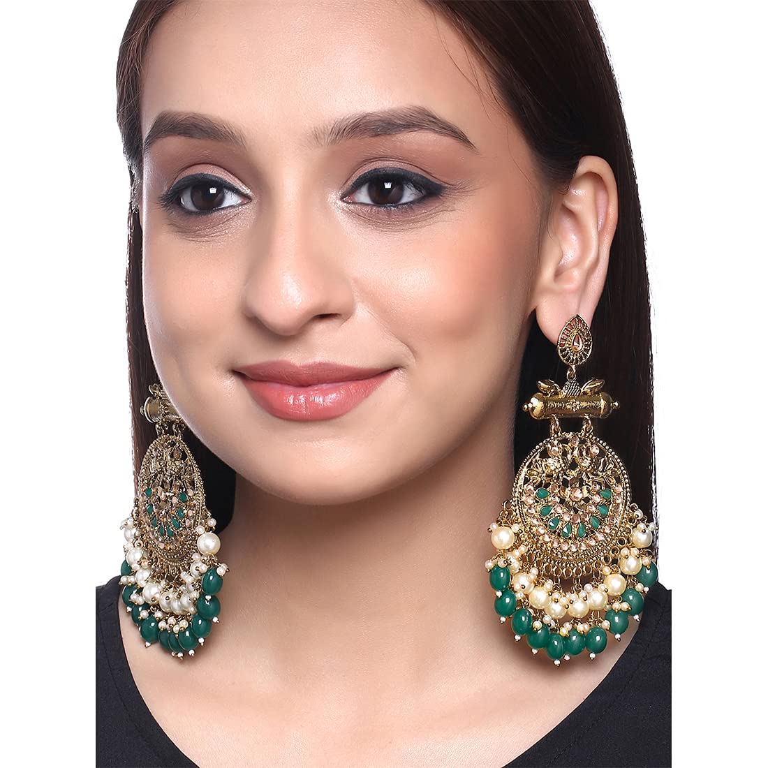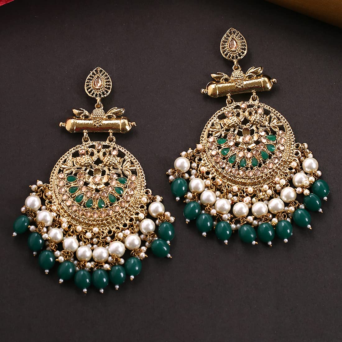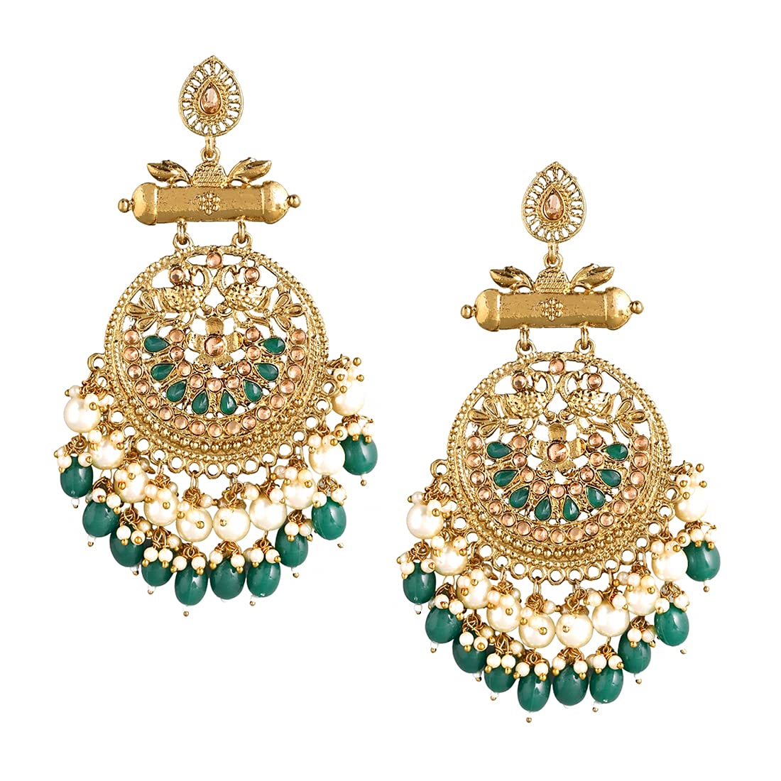 - Ethnic gold plated traditional kudan earrings peacock design handing Pearl Dangler Earrings for women. These beautiful earrings for girls are handcrafted in brass with imitation stones of very fine quality .These Modern Looks earrings will complement any Occasion Ethnic Wear as a Statement Piece.Our Product is perfect for valentines Anniversary Birthday gift for Women,girlfriend,Wife.