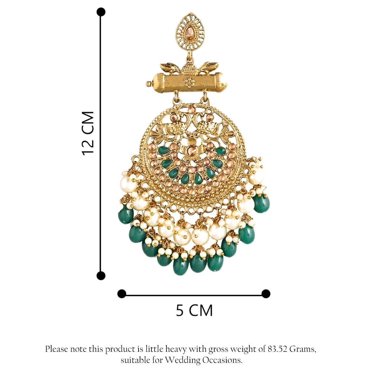 - Size Detail: Earrings Length - 9CM, Width - 4CM. Weight - 38GM.