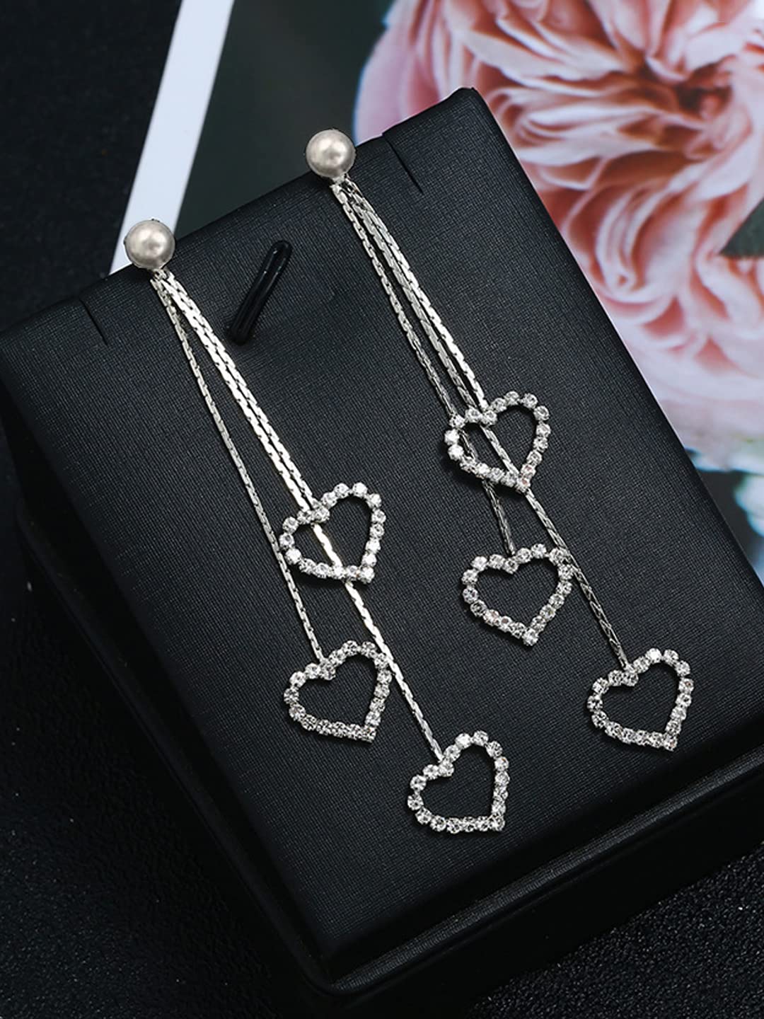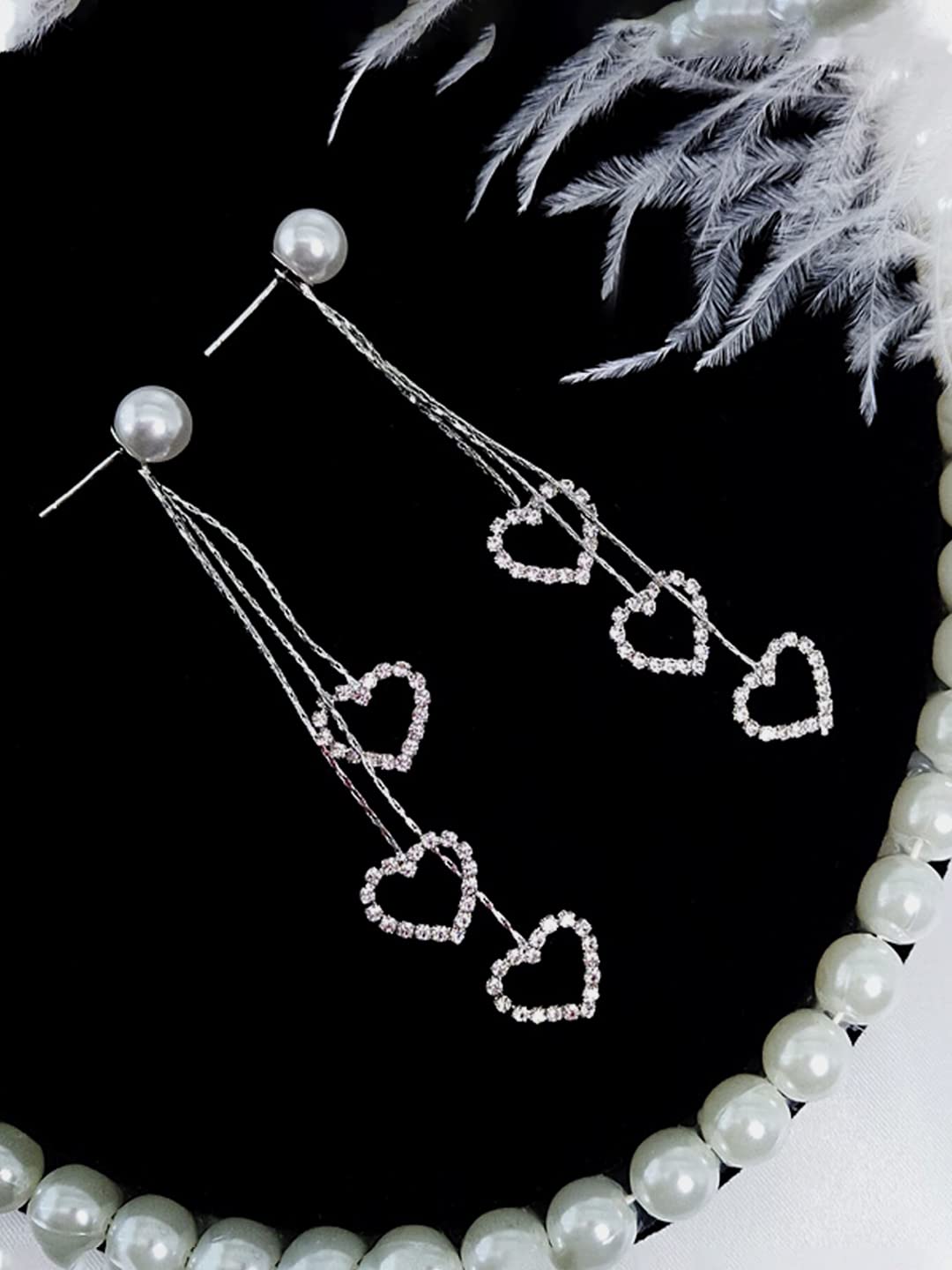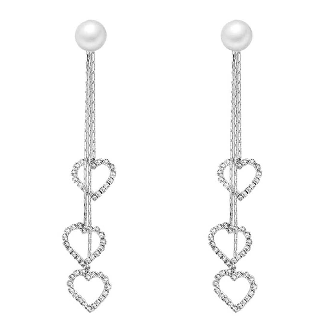 Earrings for Women & Girls Silver Pearl Dangler Earrings | Silver Toned Heart Shaped Long Chain Danglers Earrings for Women | Birthday & Anniversary Gift