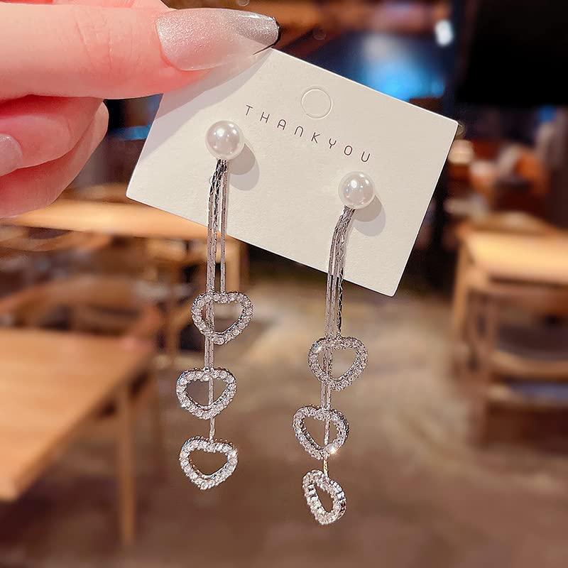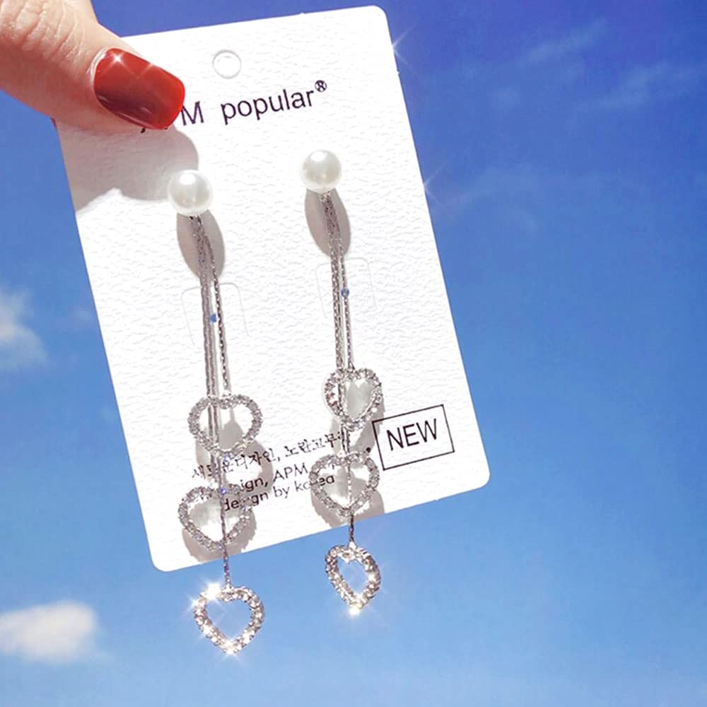 - Attractive fashion forward jewels for teens teenagers young girls ladies hanging long earrings for women featuring Heart dangler silver earrings long chain drop dangle earring pair.Elegant lovely fashion for finishing complementing look.Gorgeous ear jewels for casual special days. Our Product is perfect for valentines Anniversary Birthday gift for Women,girlfriend,Wife.