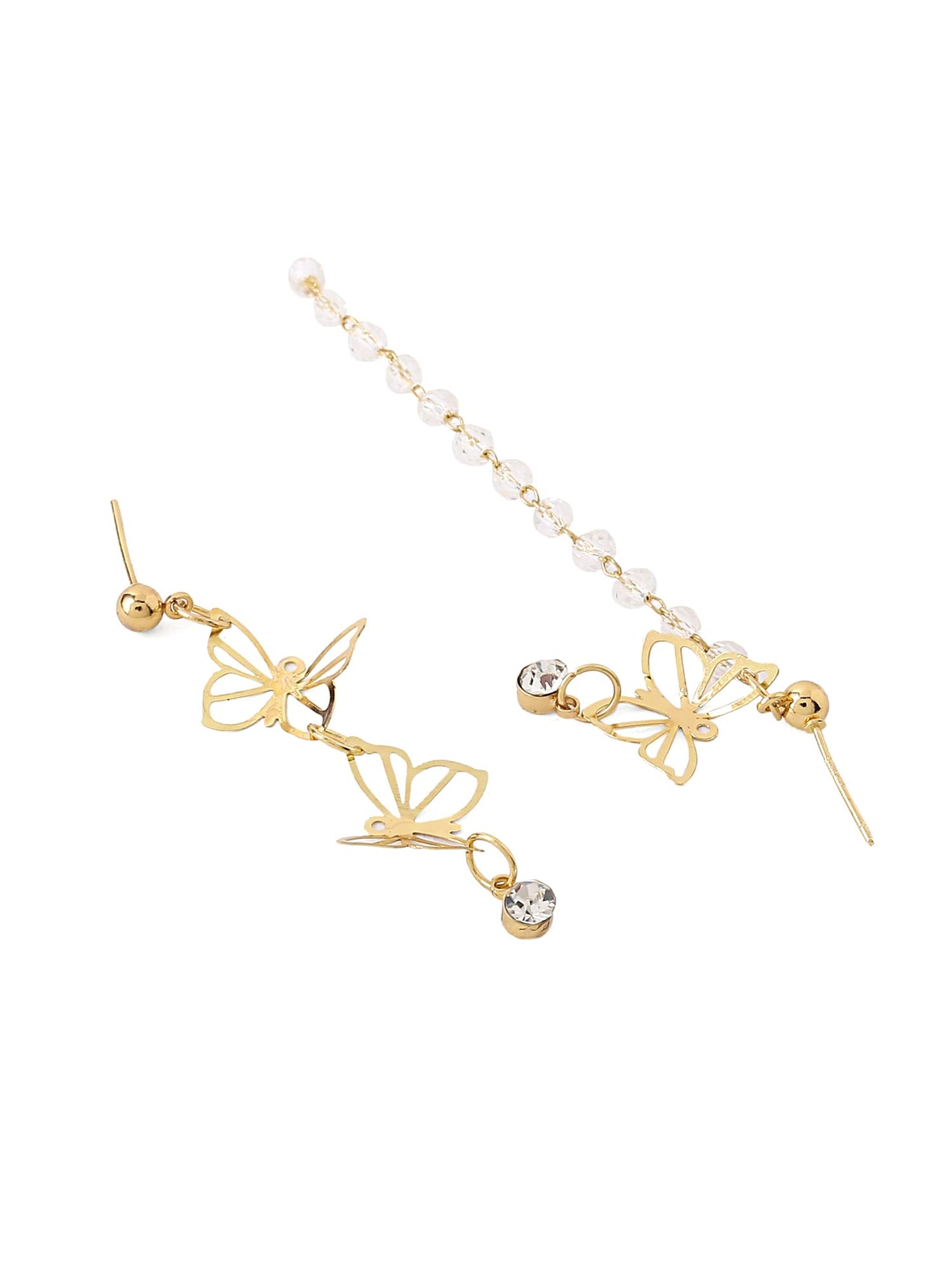 Introducing the exquisite Yellow Chimes Earrings, designed for women and girls who appreciate the elegance of pearl danglers. These stunning earrings feature a unique gold-toned butterfly mismatch design, making them a perfect accessory for any occasion.