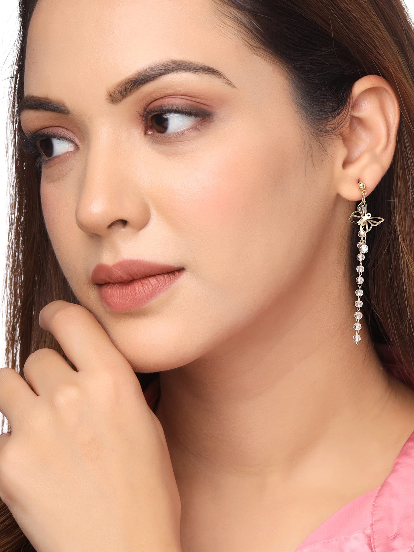 Earrings for Women and Girls Pearl Dangler | Gold Toned Butterfly Mismatch Designed Long Danglers Earrings | Birthday Gift for girls and women Anniversary Gift for Wife