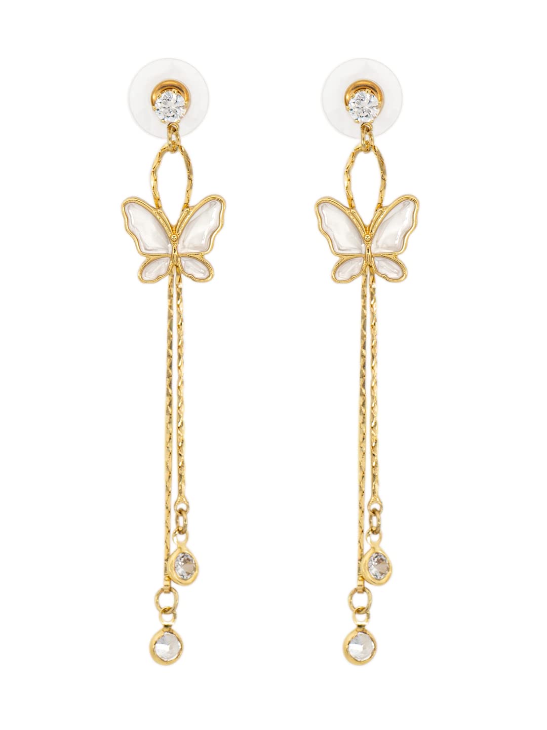 Elevate your accessory game with the stunning Yellow Chimes Earrings, designed for women and girls who appreciate the perfect blend of style and sophistication. These gold-toned butterfly-shaped long danglers are not just earrings; they are a declaration of your unique style.