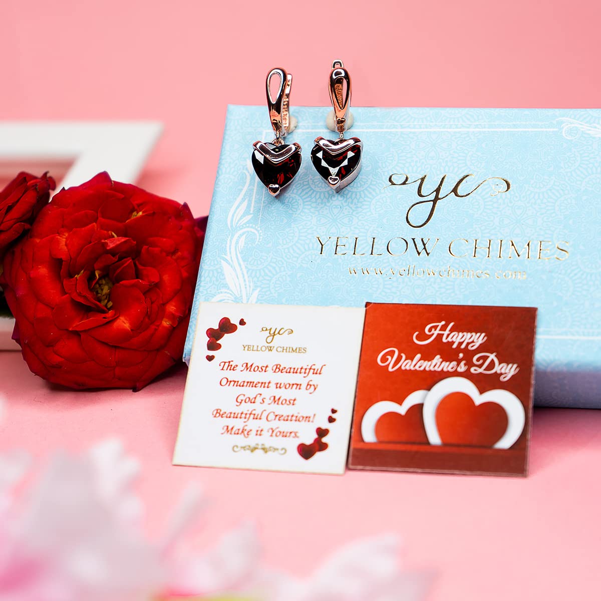 Yellow Chimes Earrings for Women and Girls Red Stone Crystal Drop Earrings | Rose Gold Plated Valentine Heart Shape Drop Earrings | Birthday Gift for girls and women Anniversary Gift for Wife