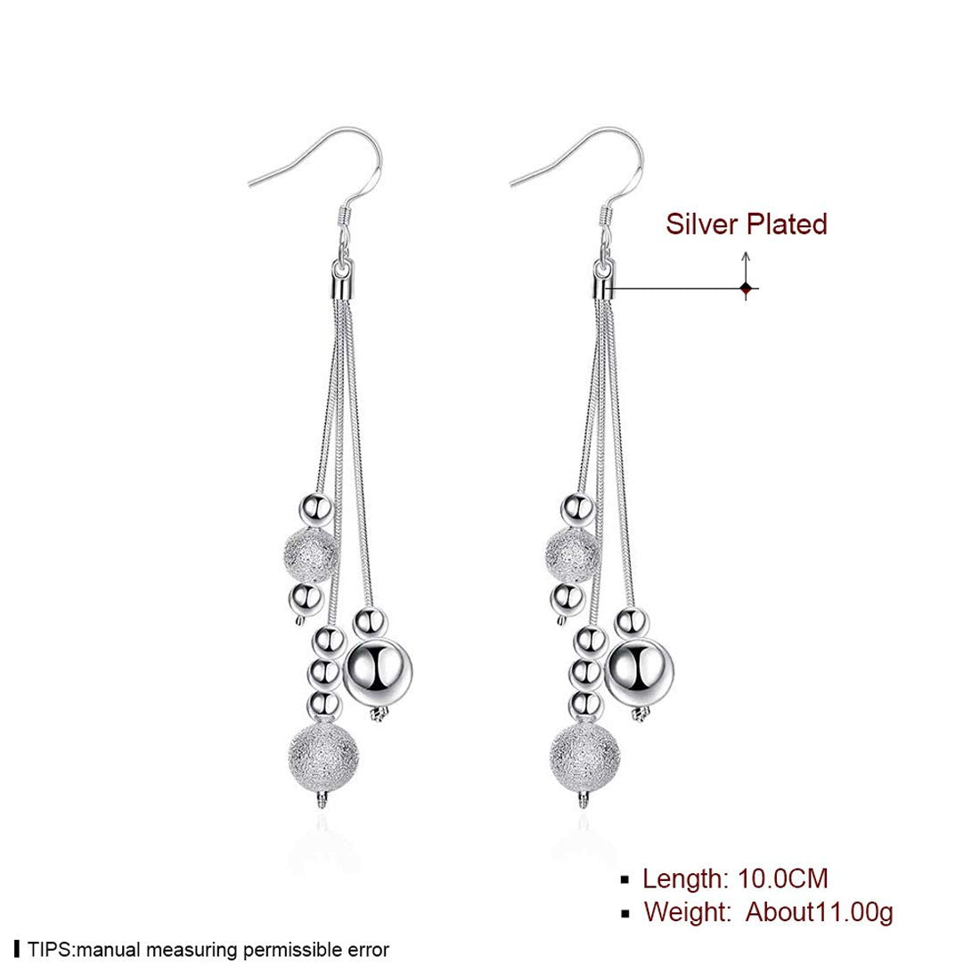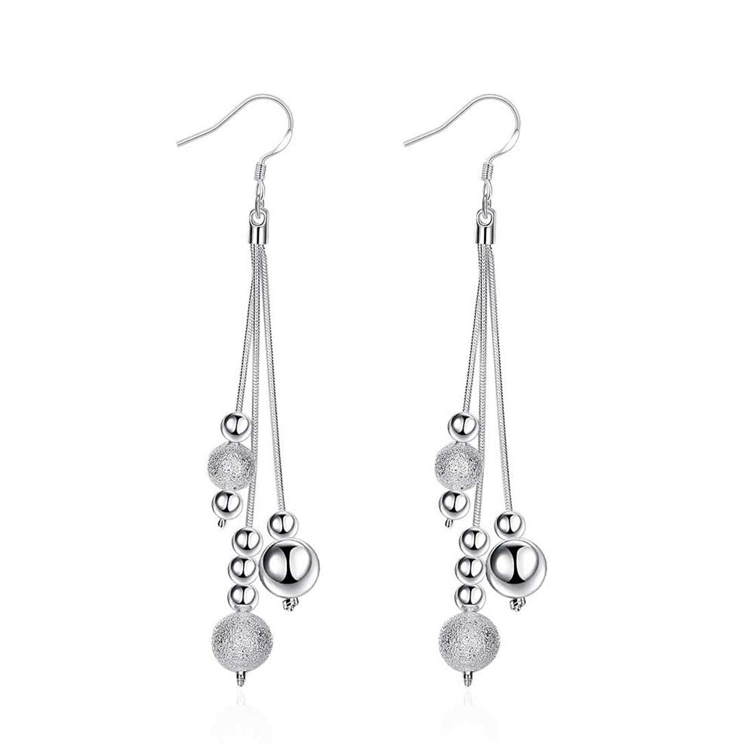 Our long chain dangler earrings are designed to catch the eye with their chic and sophisticated aesthetic. The unique silver-toned beads create a stunning visual appeal that complements any outfit: