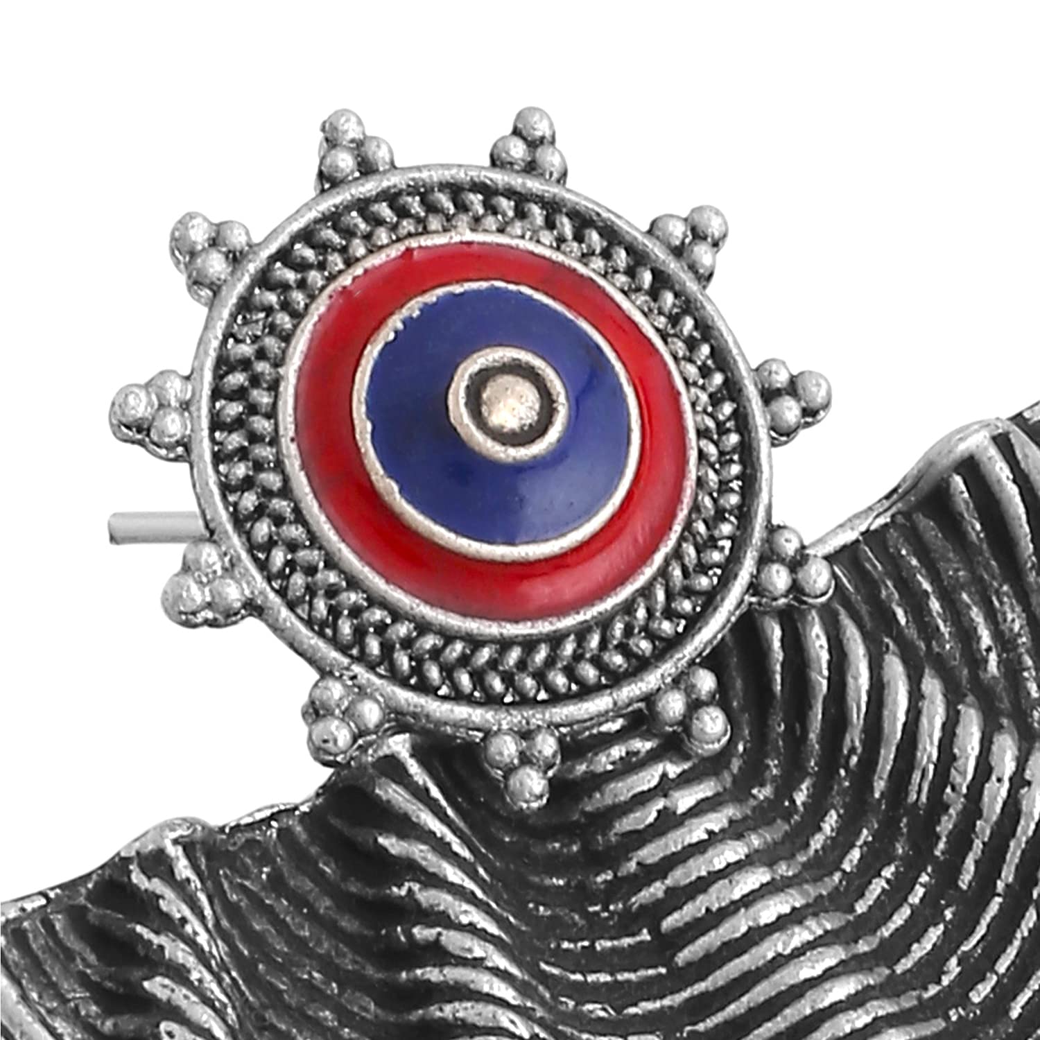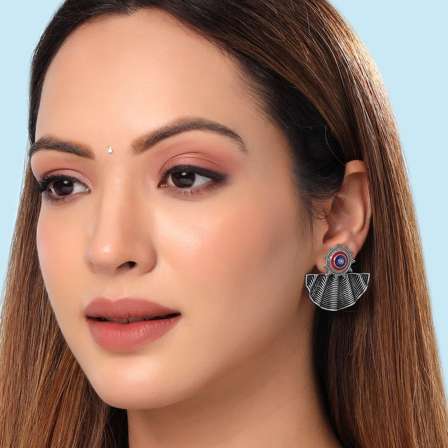 Embrace the charm of our Yellow Chimes Silver Oxidised Drop Earrings, designed for women and girls who appreciate beauty and sophistication. These striking Chandbali styled drop earrings are not just accessories; they are a statement of elegance and a testament to skilled craftsmanship.