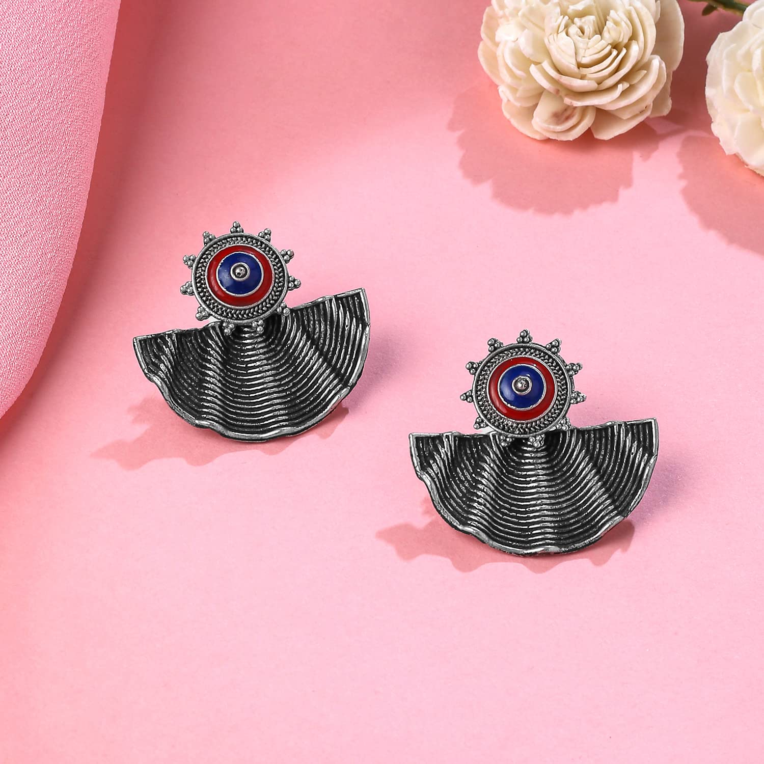 Earrings for Women and Girls Silver Oxidised Drop Earrings | Silver Oxidised Chandbali Designed Drop Earrings|Birthday Gift For girls and women Anniversary Gift for Wife