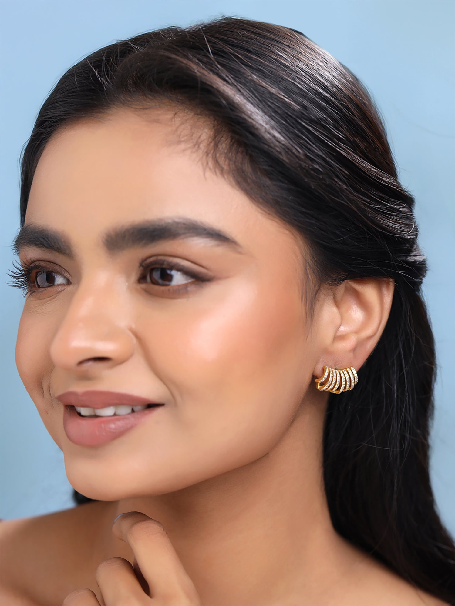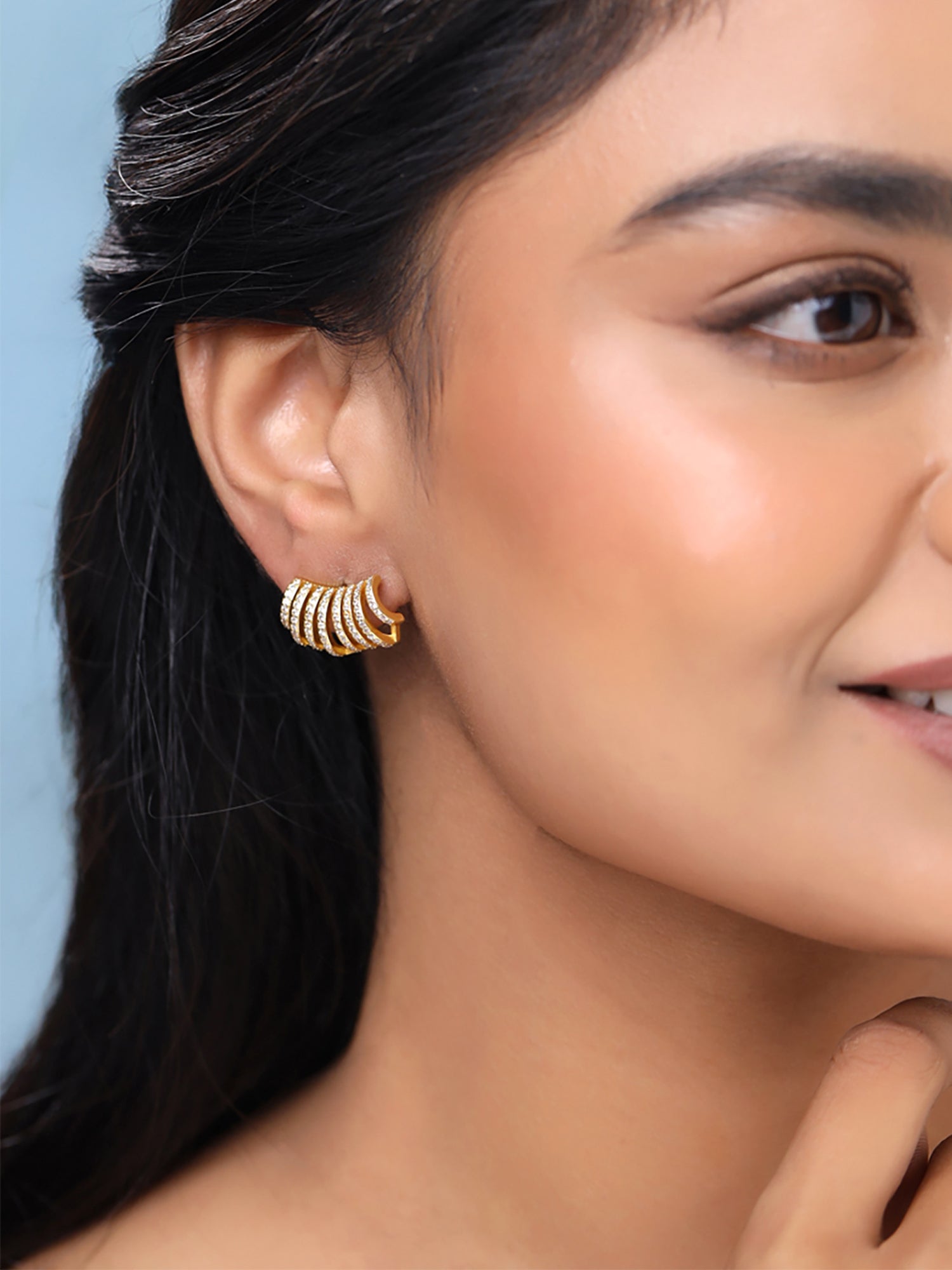 Earrings for Women and Girls Studs for Girls | Gold Toned Crystal Layered Stud Earrings | Birthday Gift for girls and women Anniversary Gift for Wife
