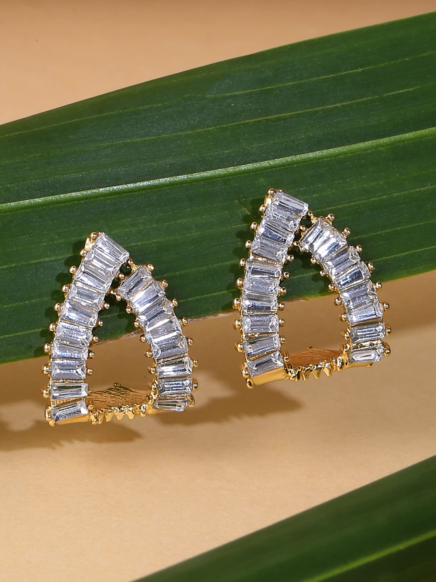 - Crystal studded triangle shaped stud searrings for women are simple and fashionable, gorgeous and shiny, suitable for any outfit or occasion, such as daily life, party, dance, wedding, anniversary, graduation, etc. Earrings with praise and blessings, express your love with our beautiful earrings.Our Product is perfect for valentines Anniversary Birthday gift for Women,girlfriend,Wife.