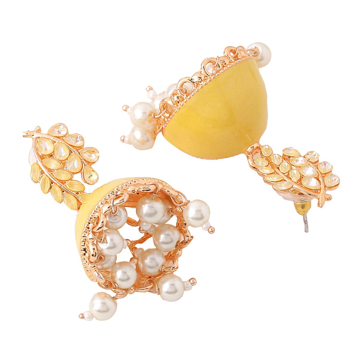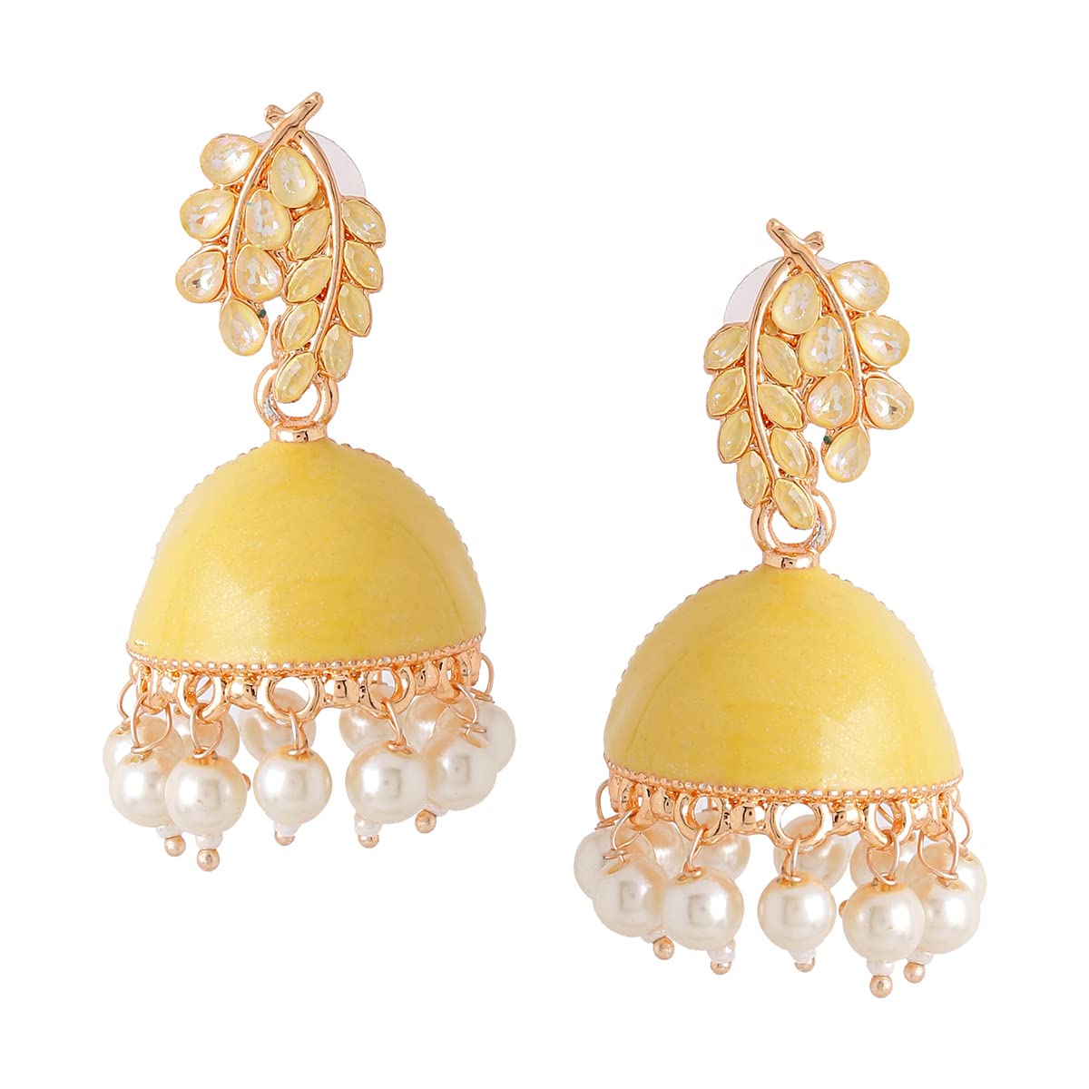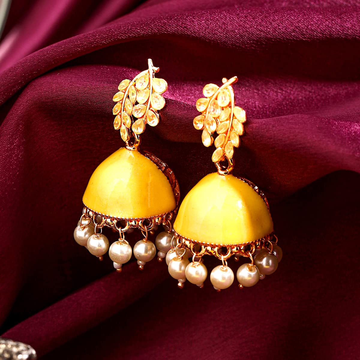 Earrings for Women and Girls Yellow Meenakari Jhumka | Gold Plated Jhumki Earrings | Birthday Gift for girls and women Anniversary Gift for Wife