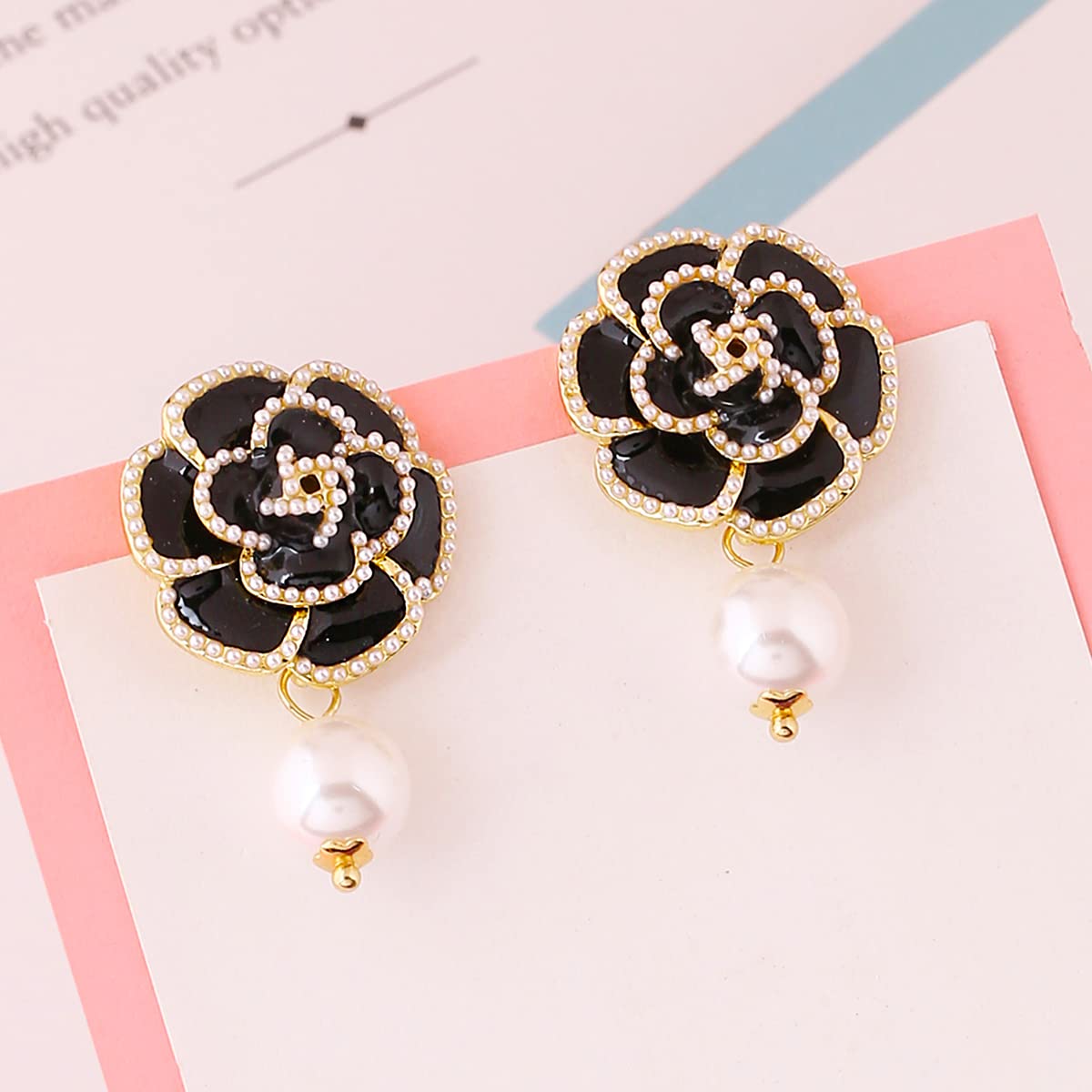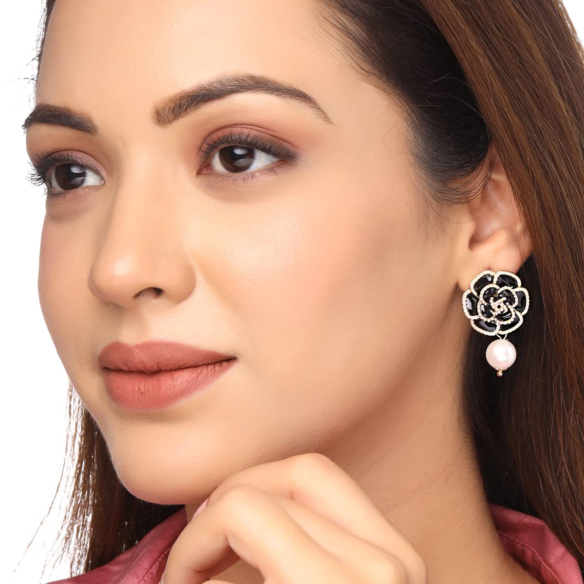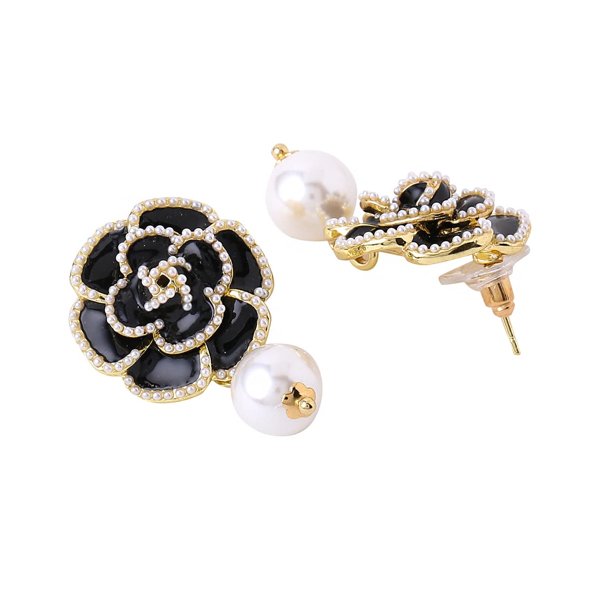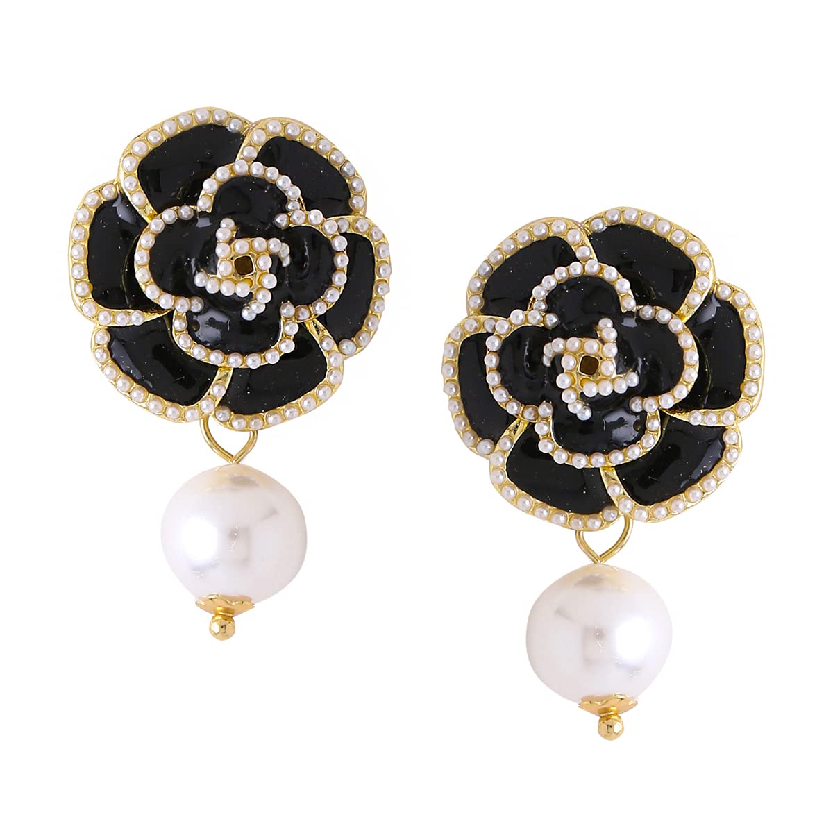 Earrings For Women Black Color Flower Stud With Pearl Hanging Drop Earrings For Women and Girls