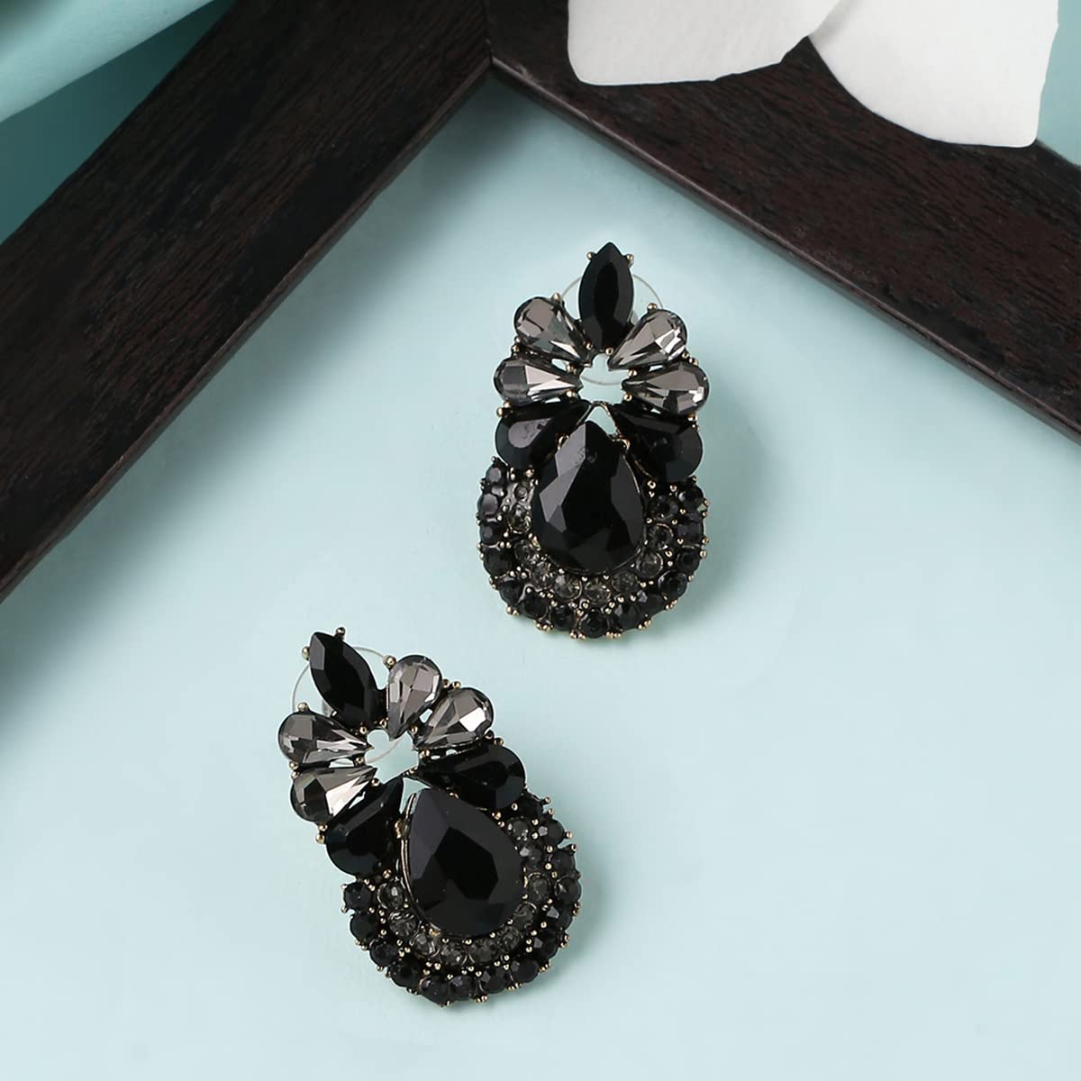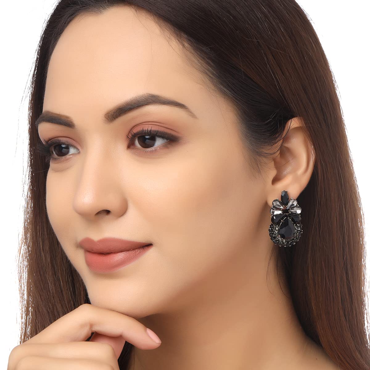 Earrings For Women Blue Color Crystal Studded Floral Stud Earrings For Women and Girls