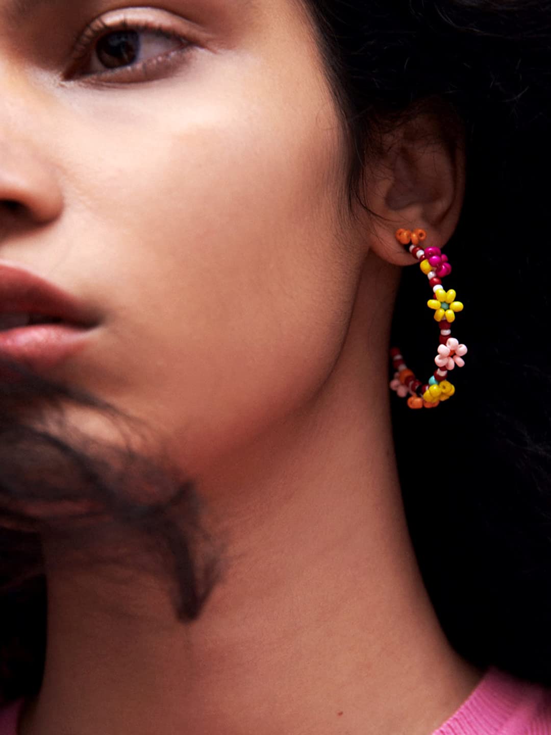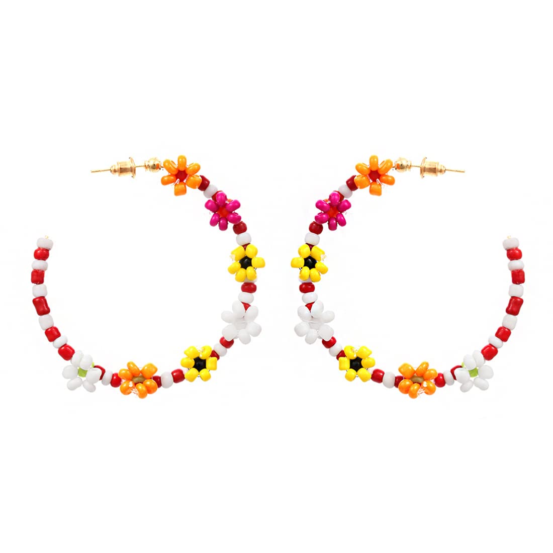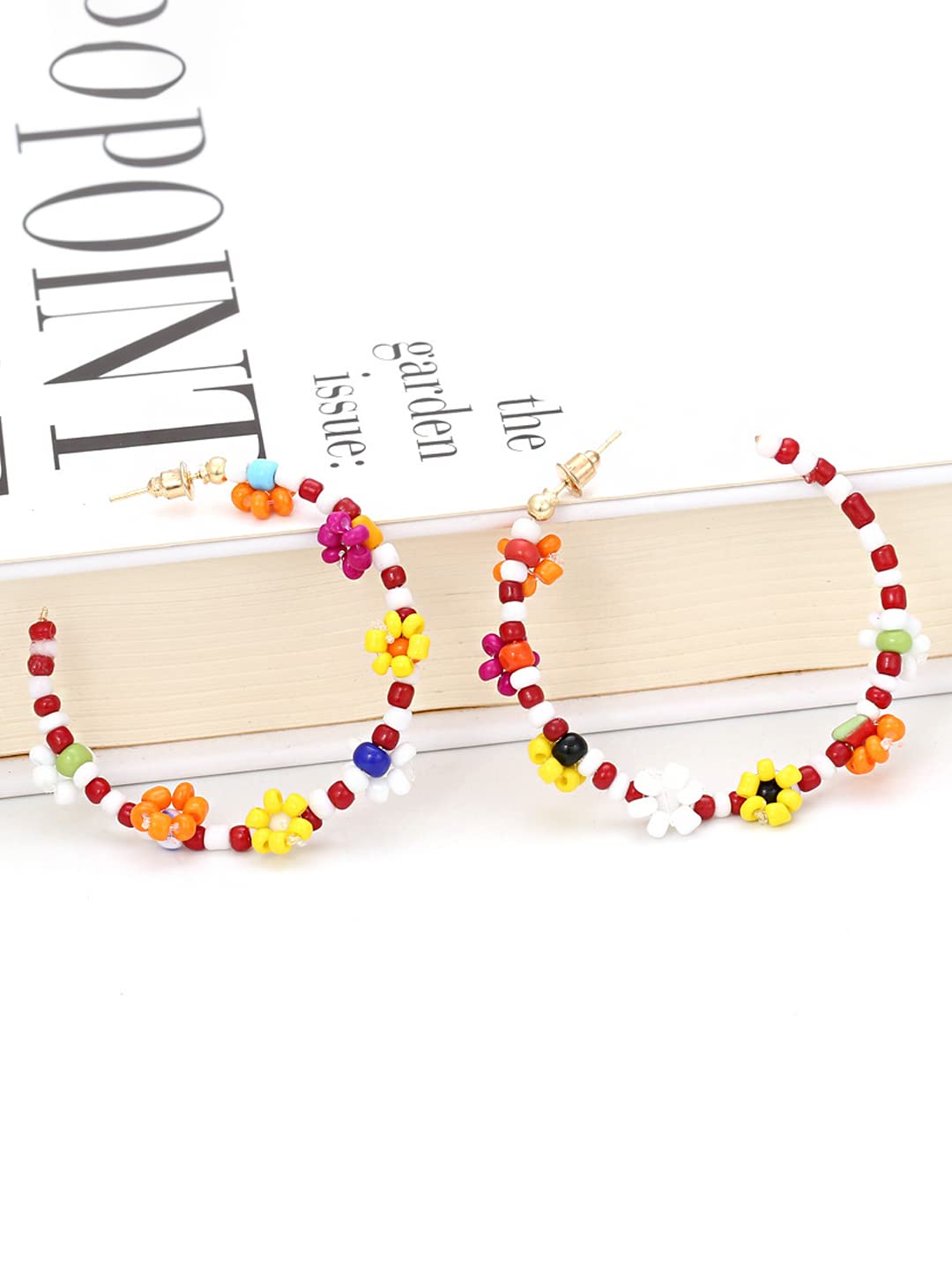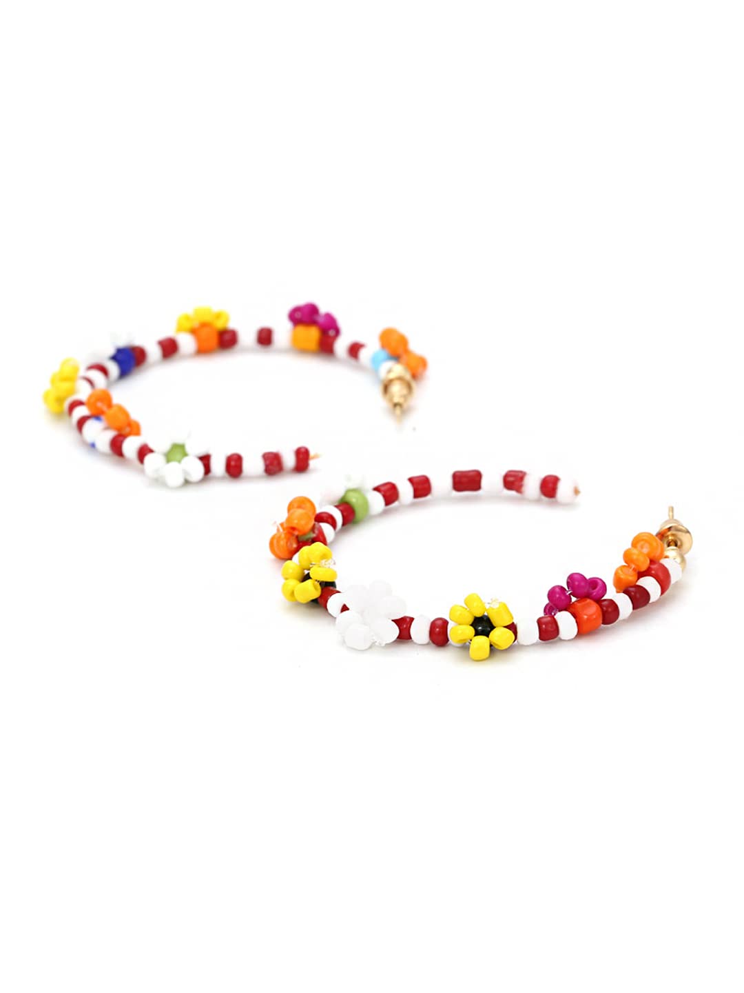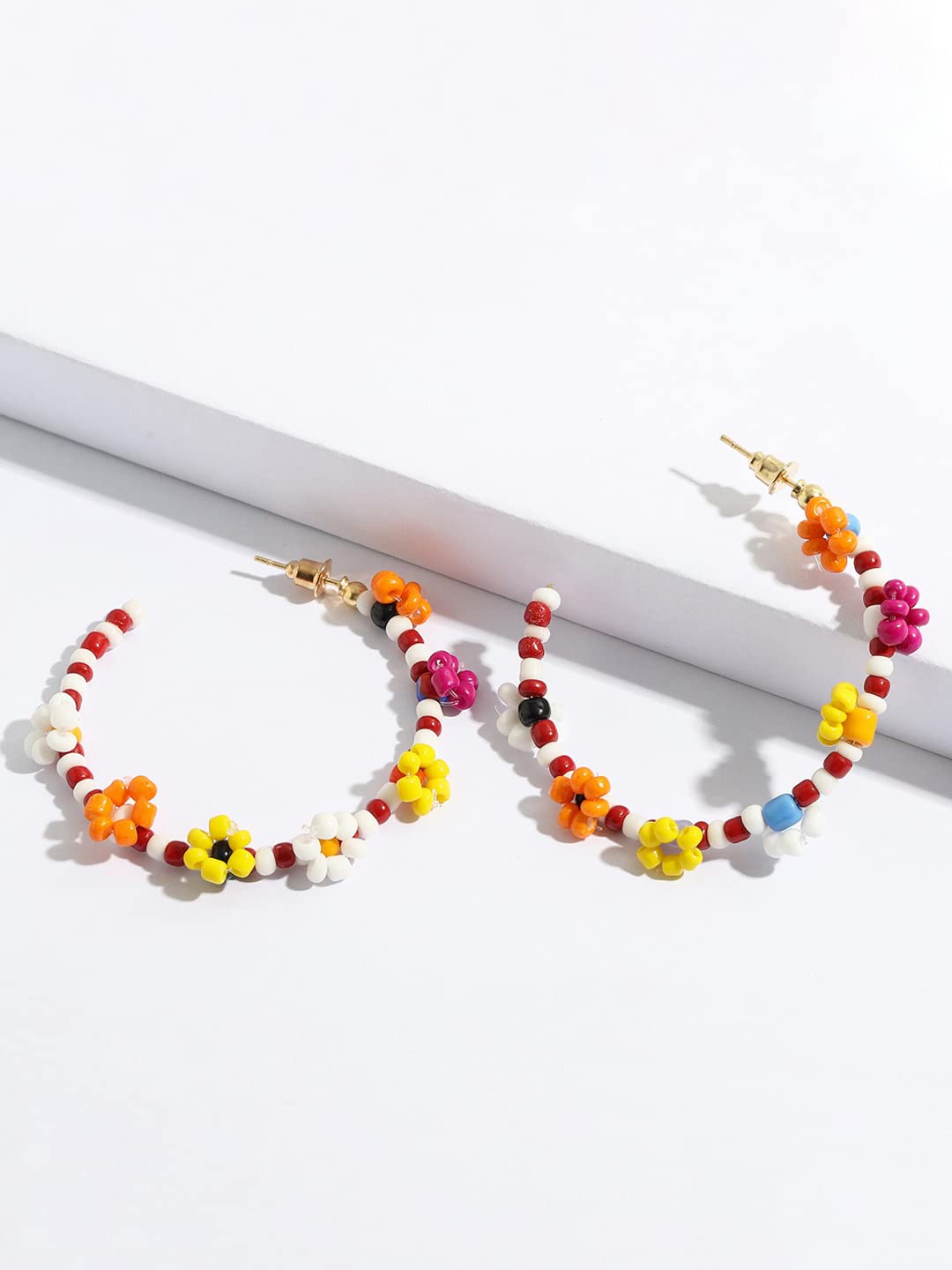Earrings For Women Bohemian Multicolor Small Flower Beads Studded Hoop Earrings For Women and Girls