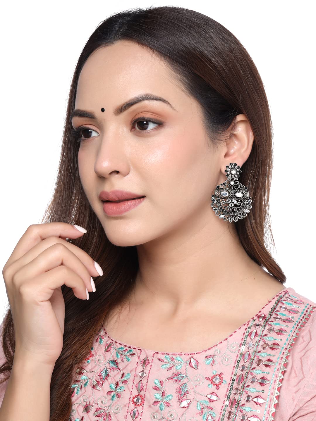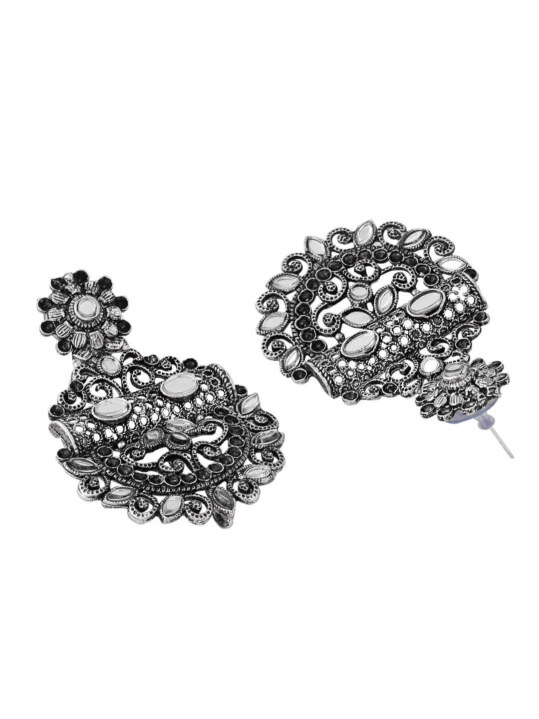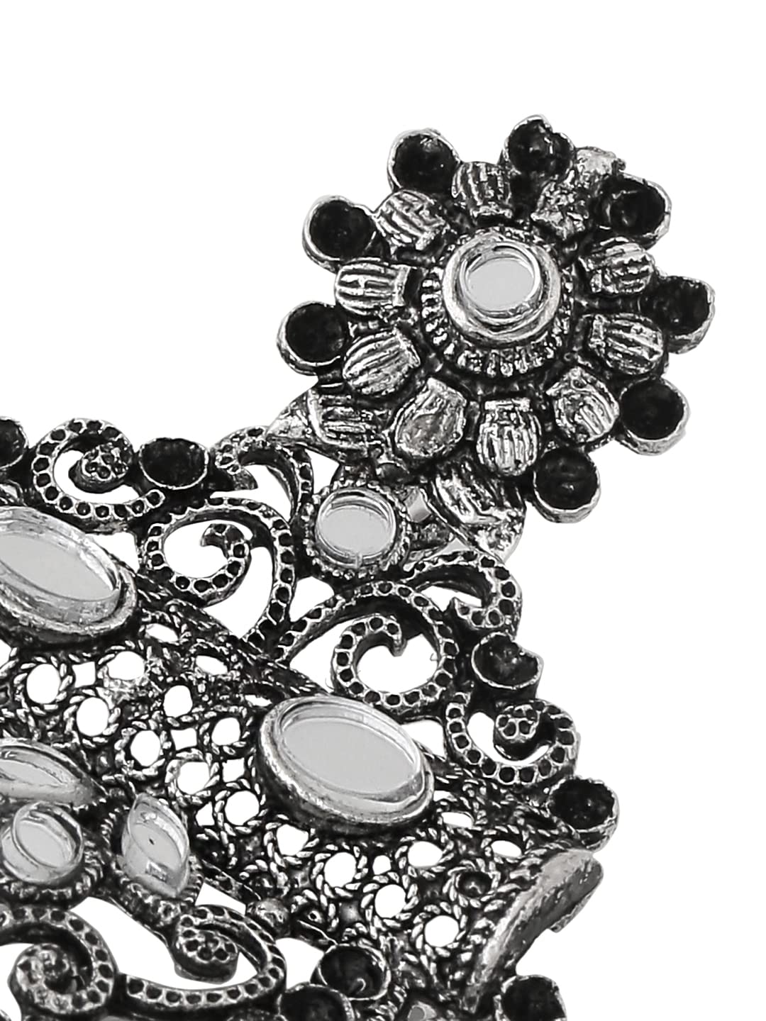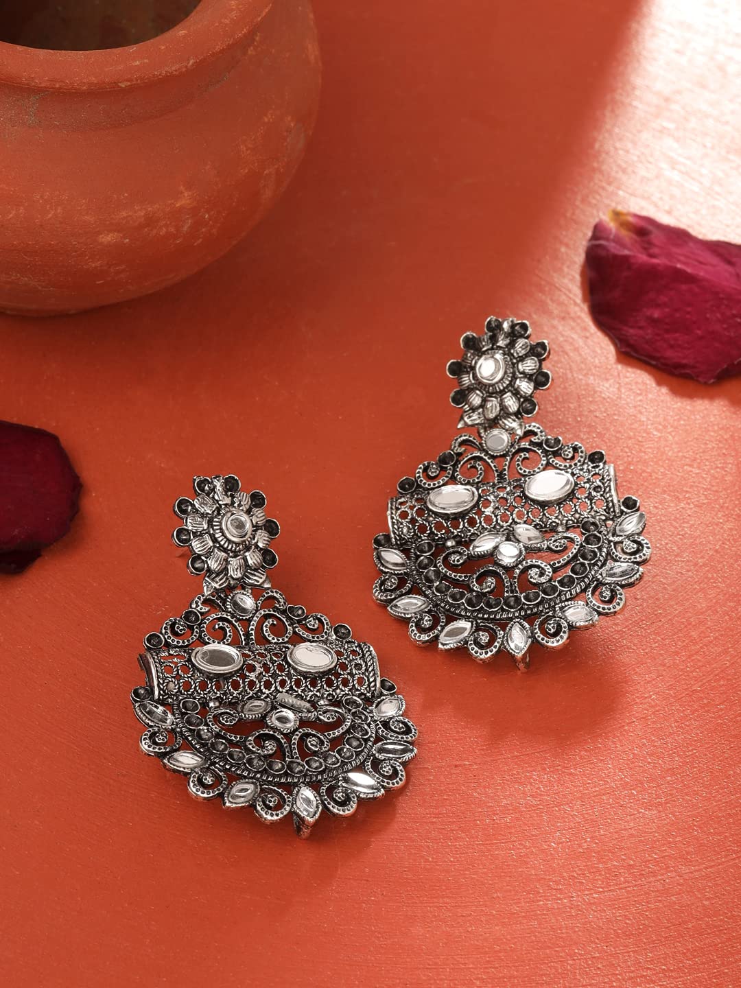 Earrings For Women Floral Designed Silver Toned Mirror Studded Chanbali Earrings For Women and Girls