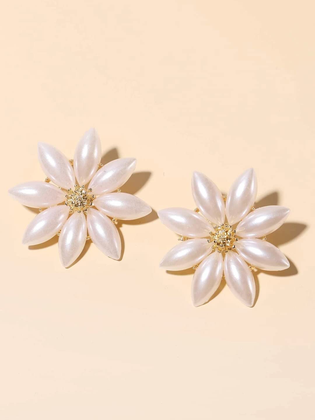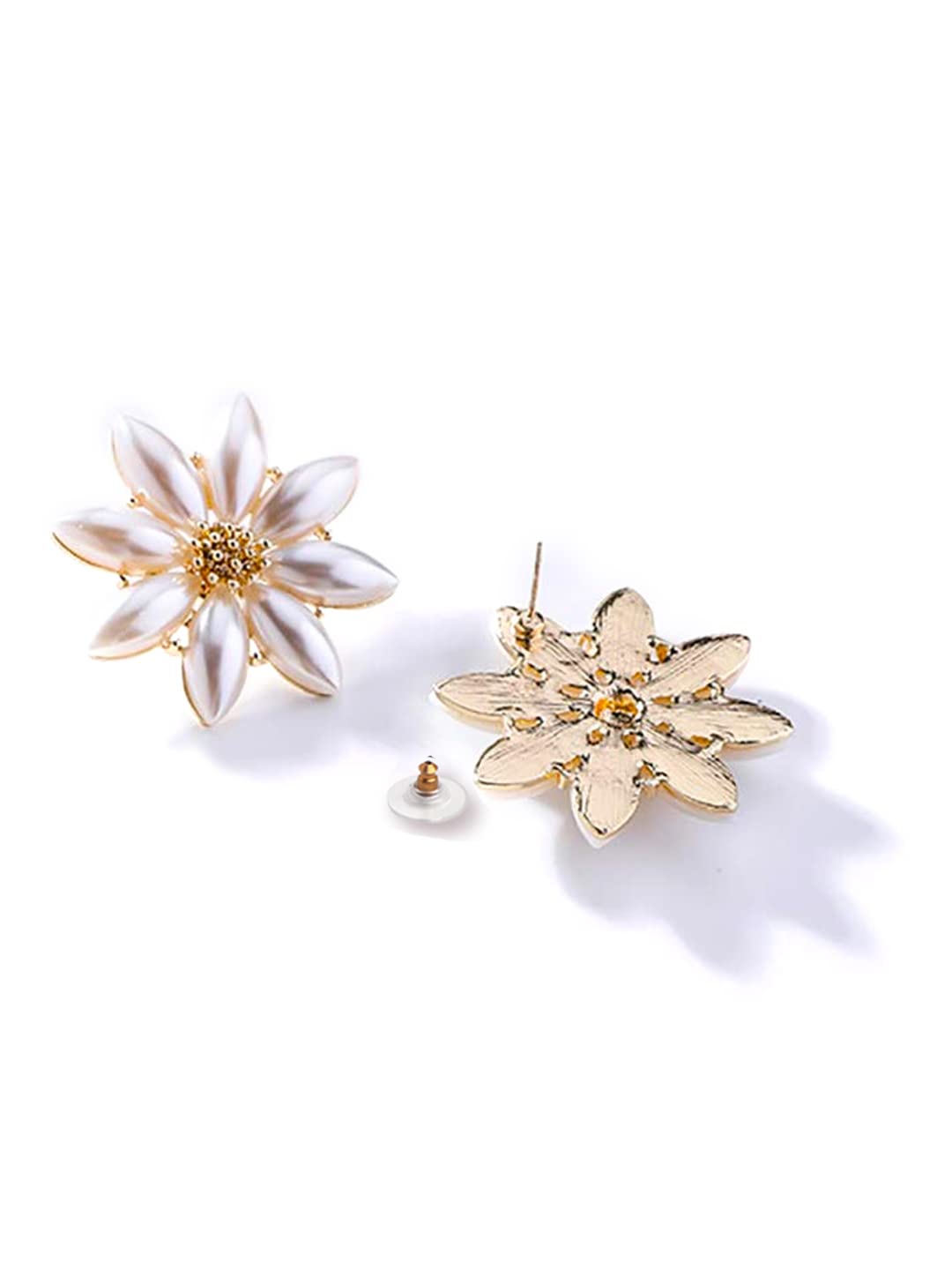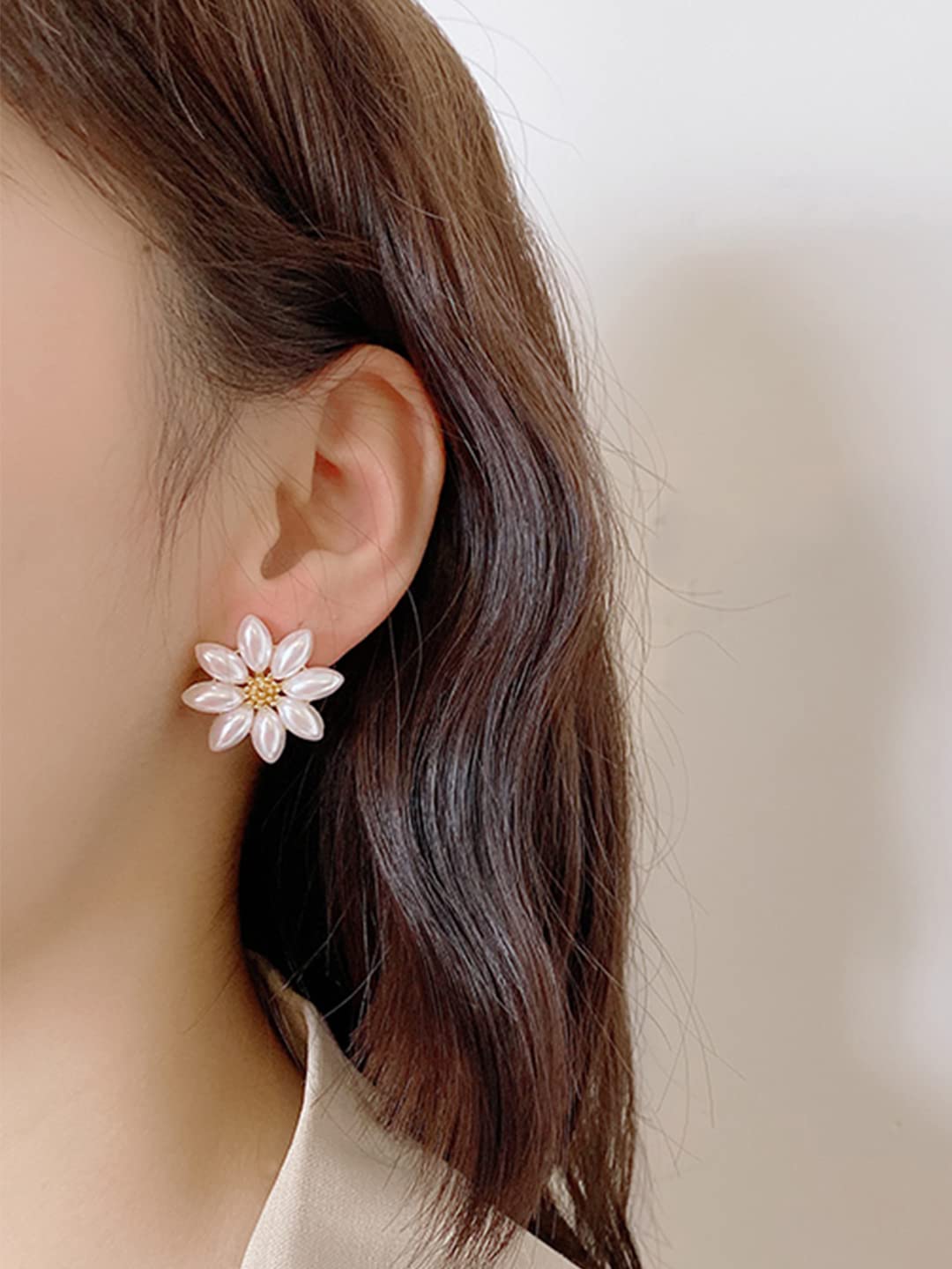 Earrings For Women Flower Shape White and Yellow Pearl Studded Stud Earrings For Women and Girls