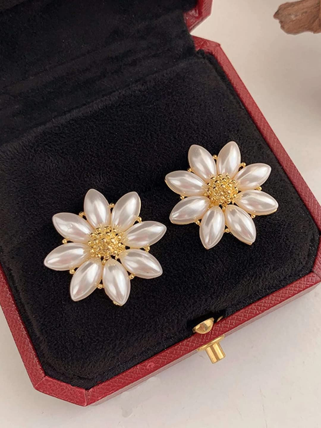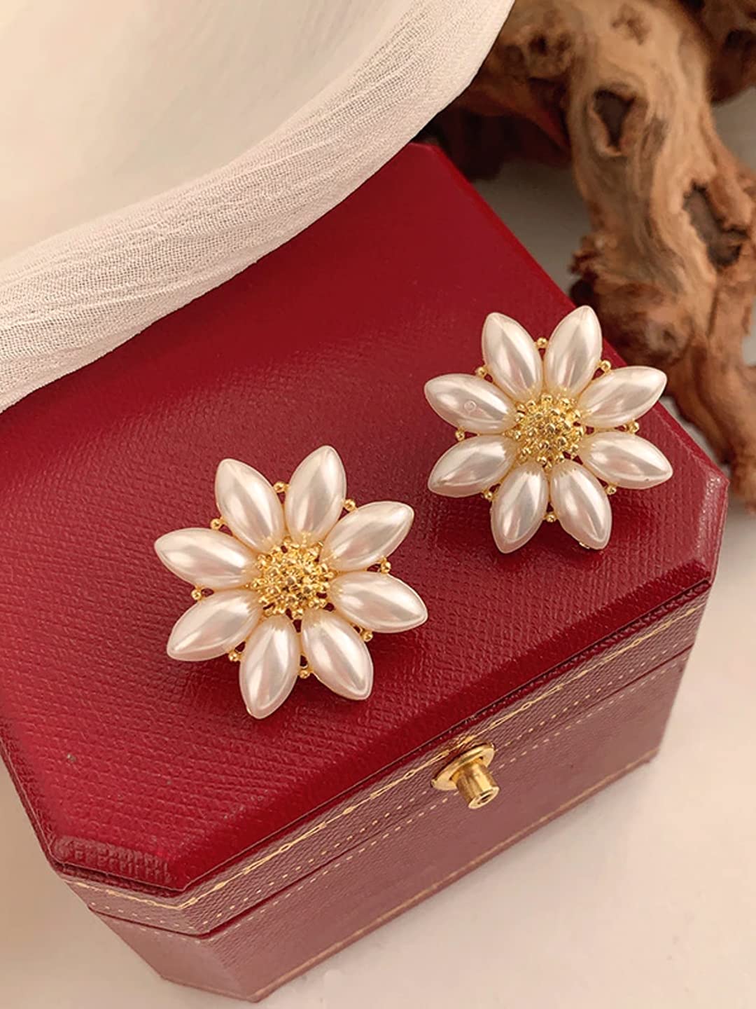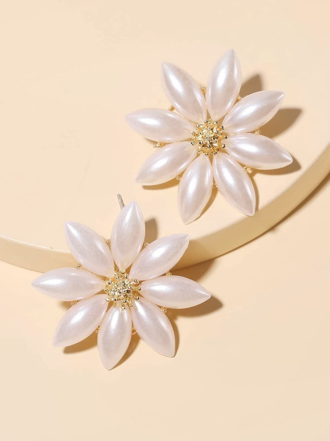Earrings For Women Flower Shape White and Yellow Pearl Studded Stud Earrings For Women and Girls