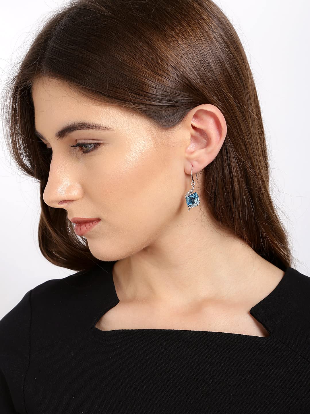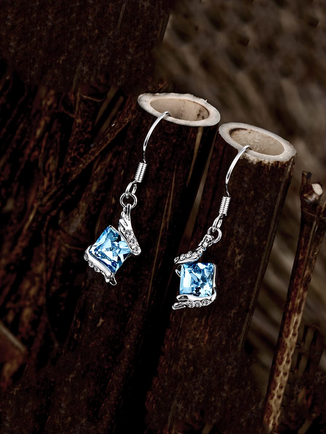 - BEAUTY-The Earrings have designer top and base, naming it an Angel Guardian style, that is curvy and holding a beautiful sparkling blue Sswarovski crystal earrings for girls. It is a good match with any of your jewellery, It can be put on with any dress style and any Occasion. A classic piece of crystal from swarovski earrings for women to put with any attire- formal or casual, always there to giving stunning looks.