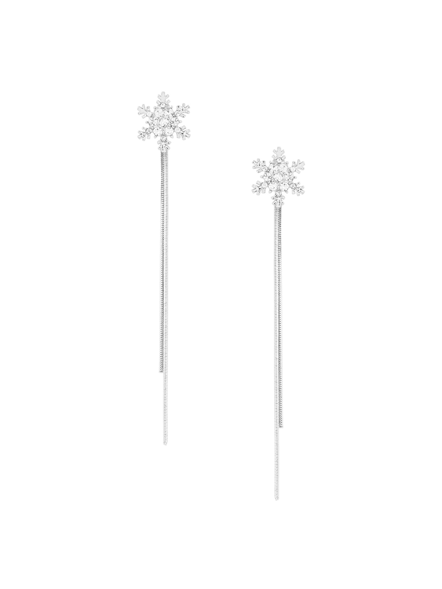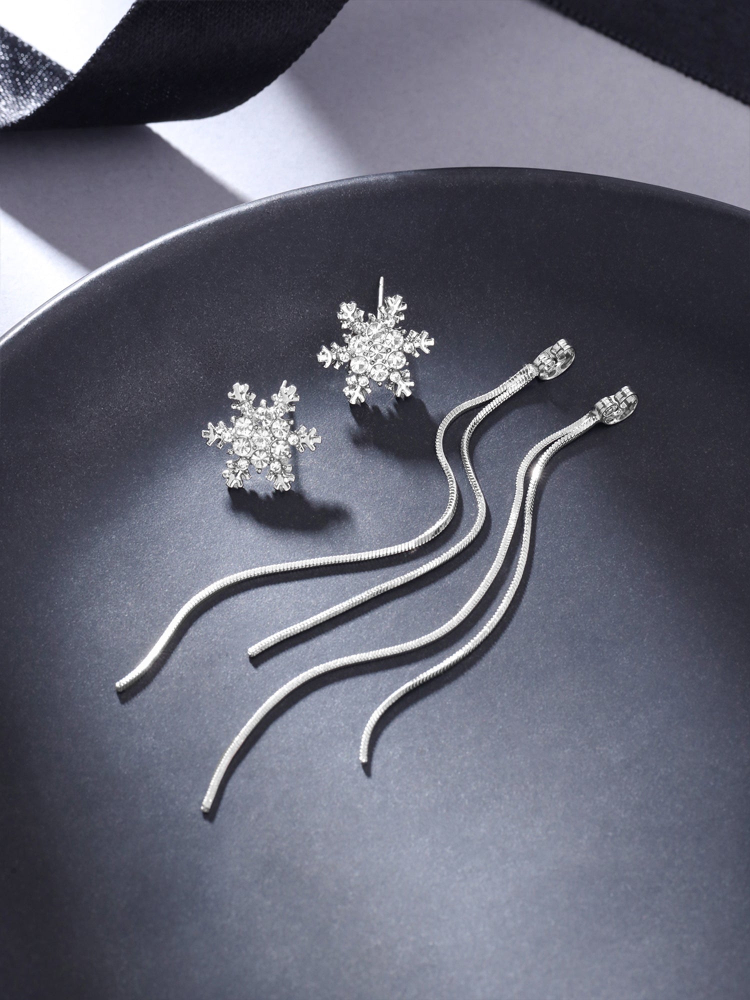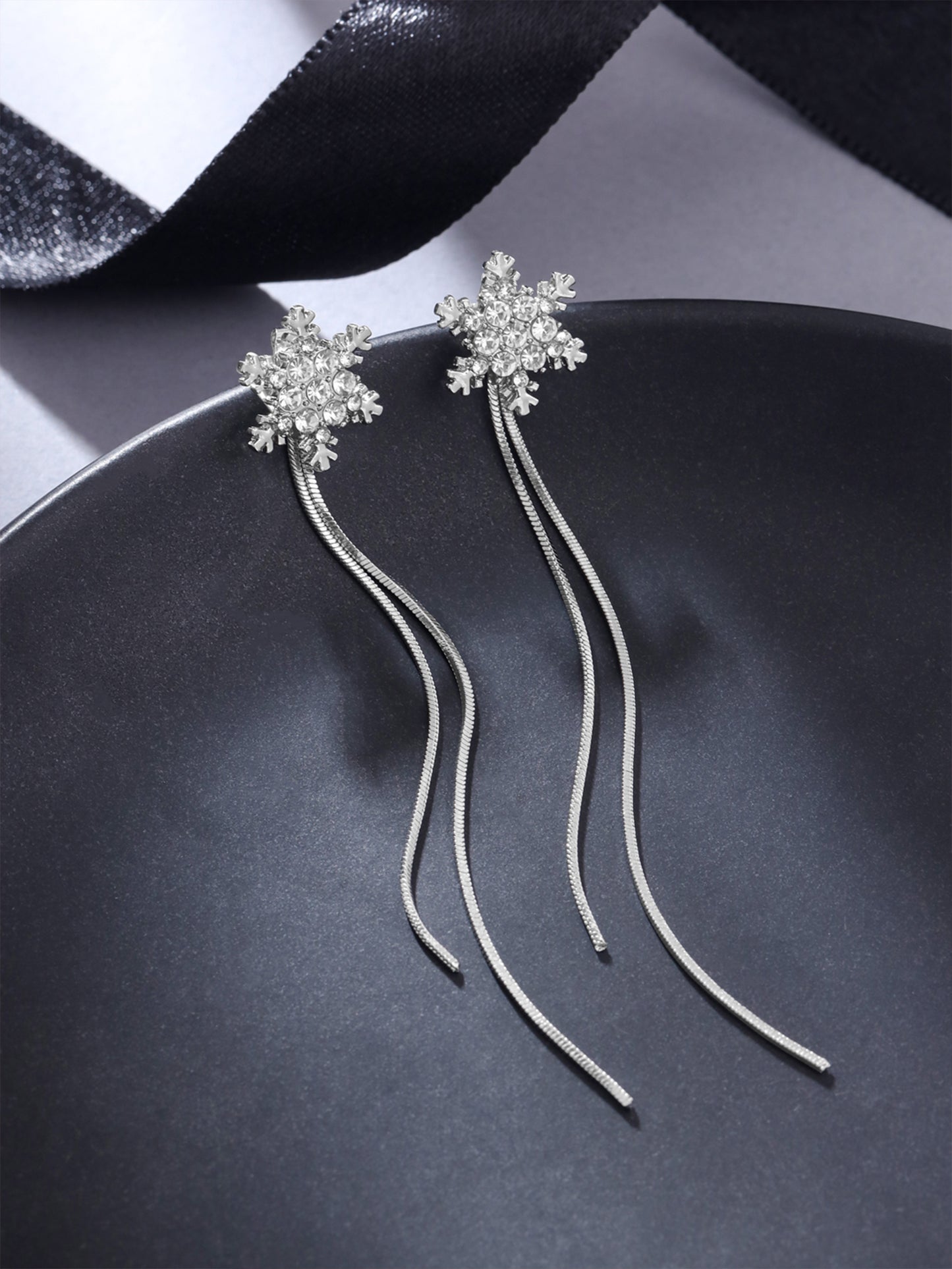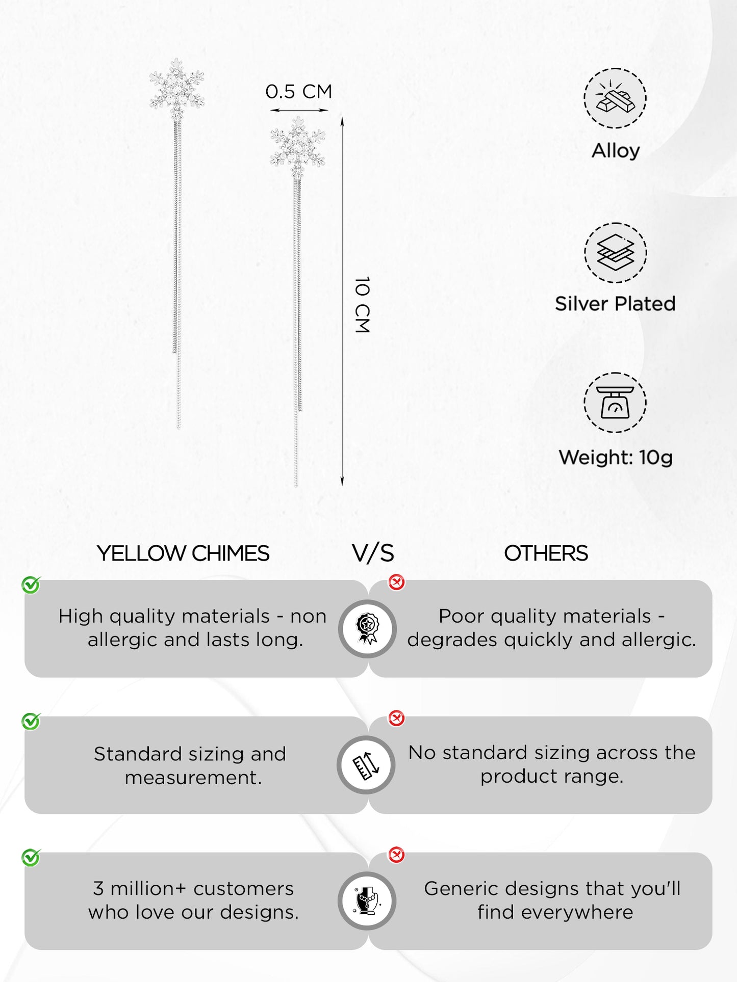 - Exquisite Design: Adorned with A5 Grade Crystals that beautifully form a snowflake design over an engraved long chain, these earrings catch the eye and add a touch of sophistication.
