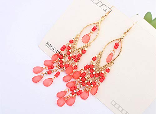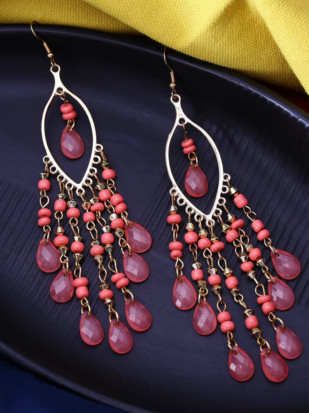 Earrings for Women and Girls Peach Dangler Earrings | Gold Plated Long Beaded Tassel Earrings Bohemia Dangler Earrings| Birthday Gift for girls and women Anniversary Gift for Wife