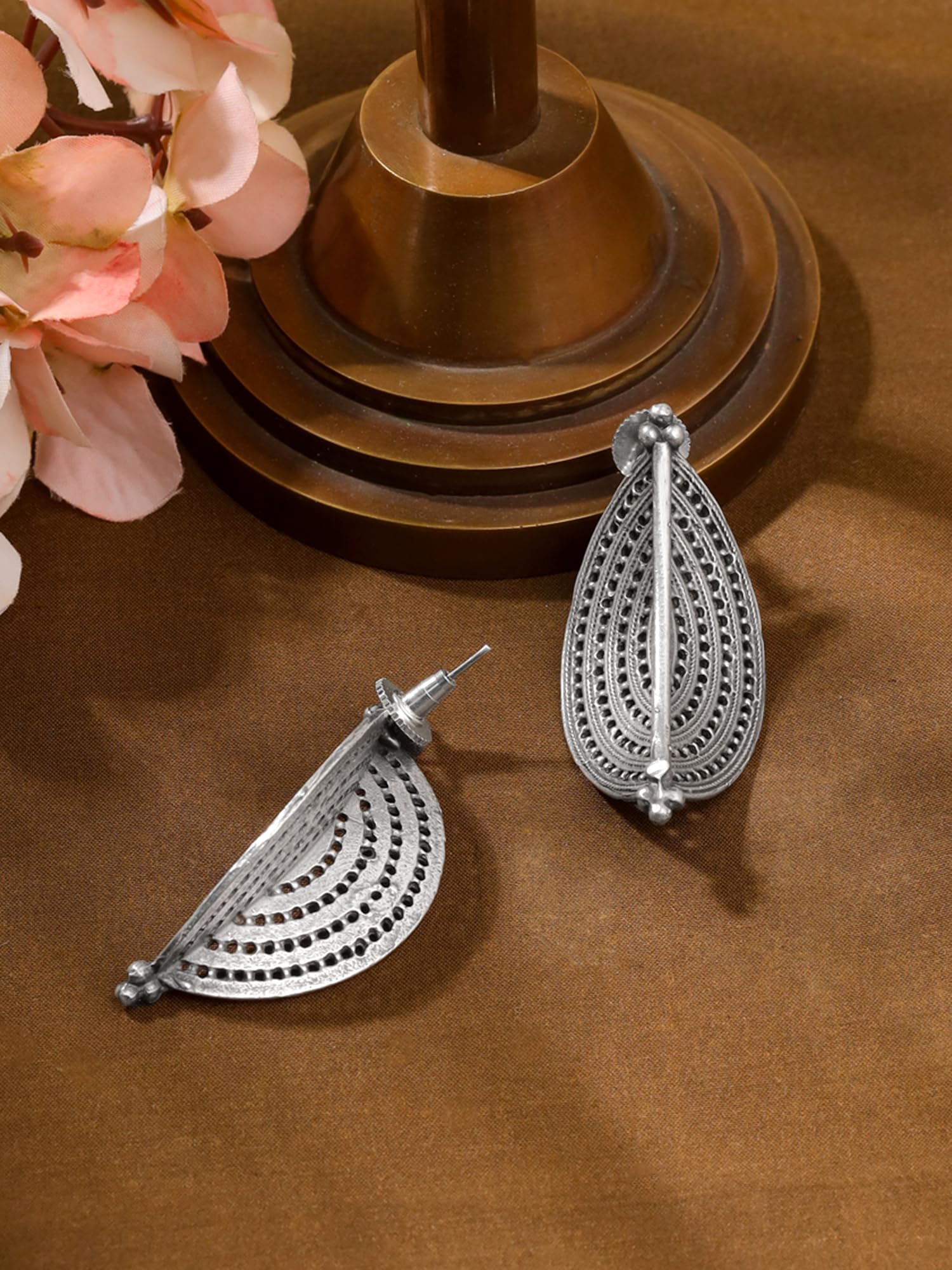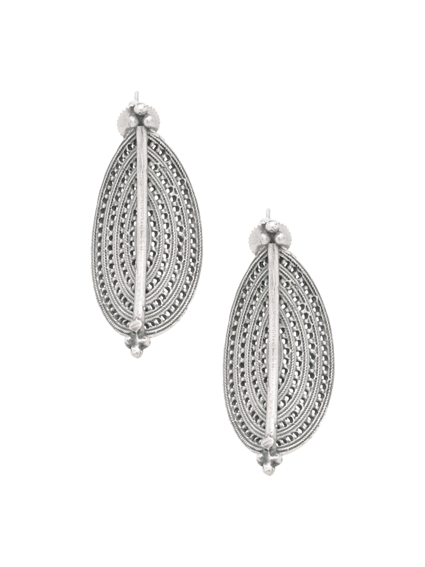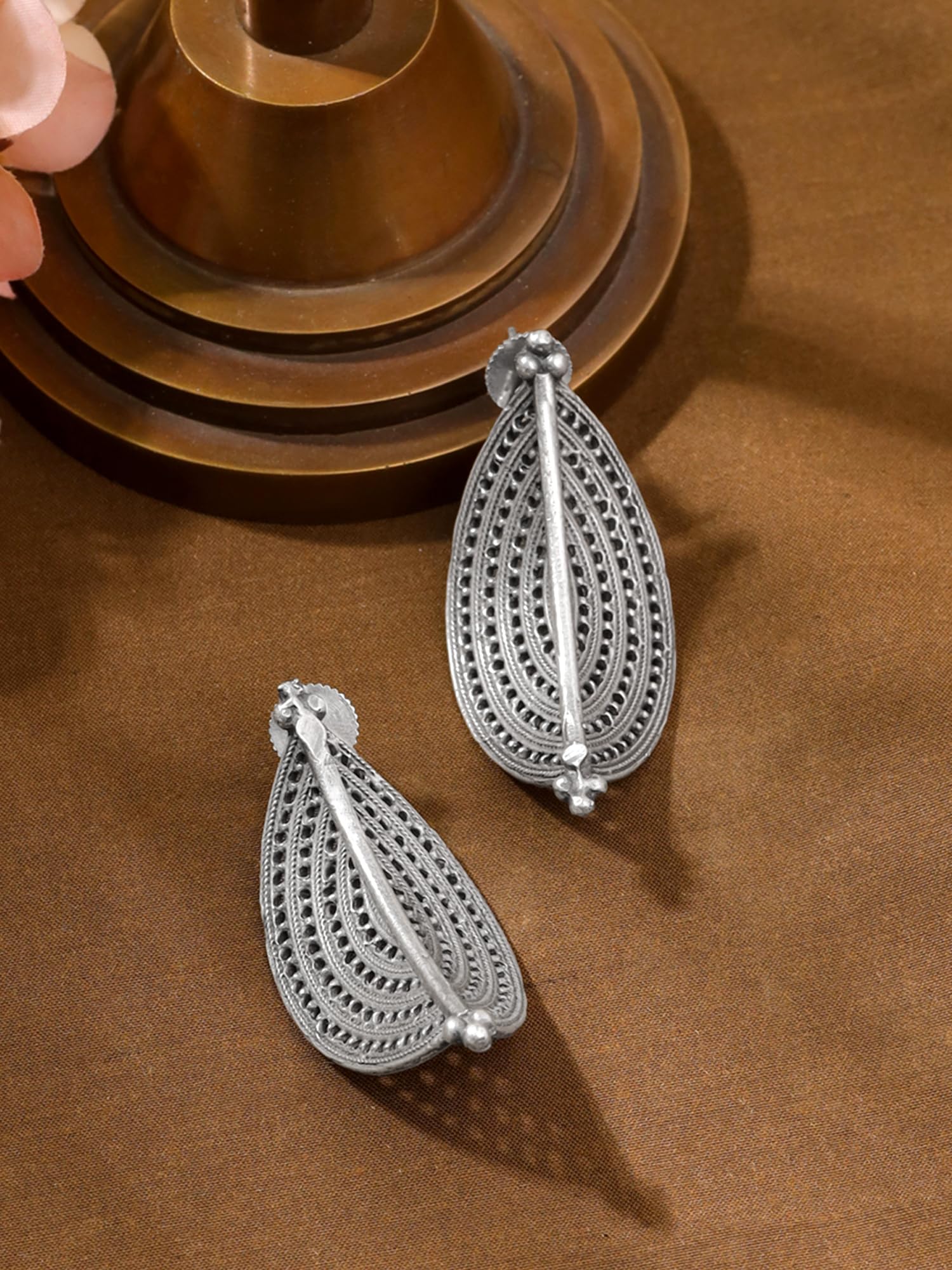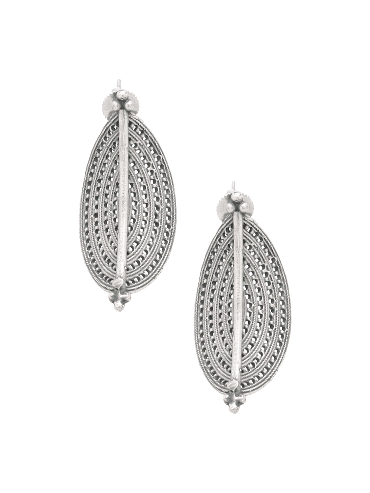 Crafted with precision, these earrings are made from high-quality oxidised silver, ensuring durability and a long-lasting shine. The unique design not only highlights your natural beauty but also showcases the skill and artistry of traditional craftsmanship.