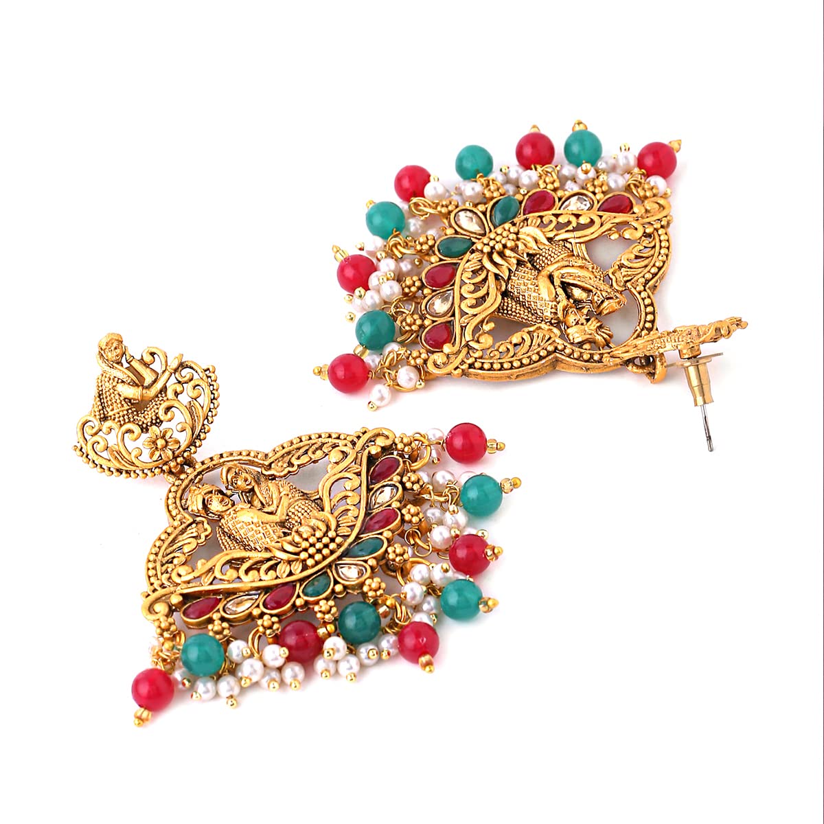 Earrings for Women & Girls Traditional Beads Drop Earrings | Gold Plated | Bridal Temple Drop Earrings | Birthday Gift for girls & women Anniversary Gift for Wife