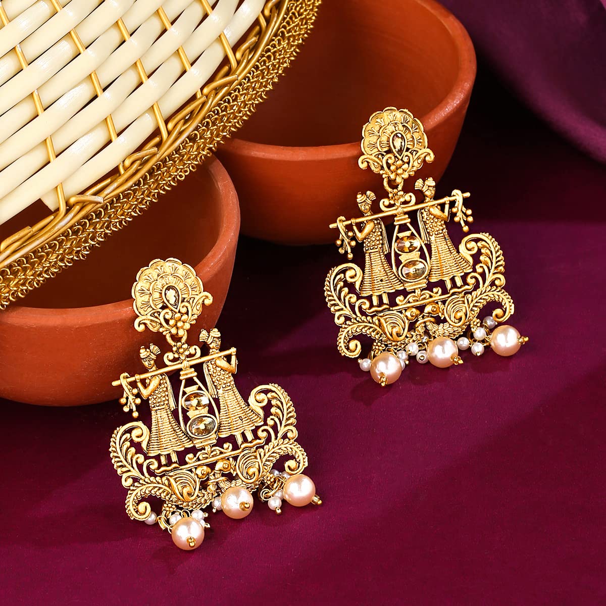 - This Gold Plated Beads Drop Traditional Earrings is a perfect traditional and bridal Earrings. Our Product is perfect for valentines Anniversary Birthday gift for Women,girlfriend,Wife.